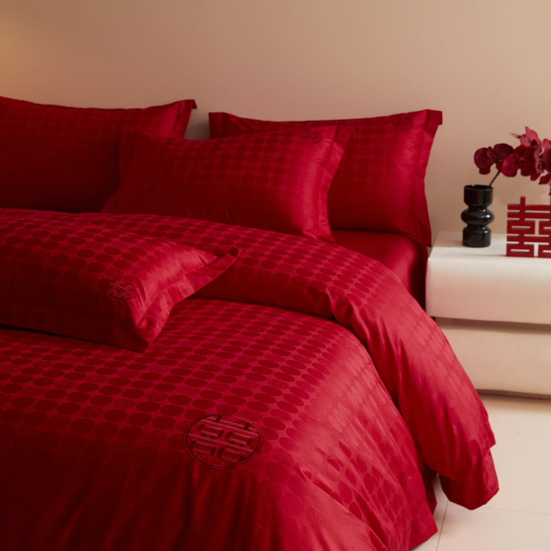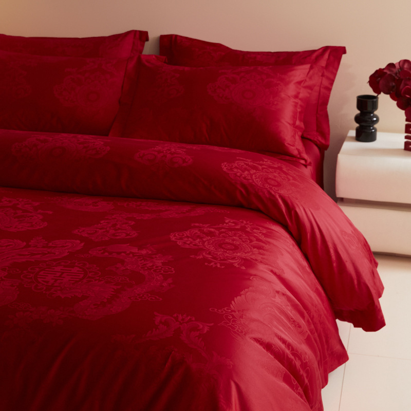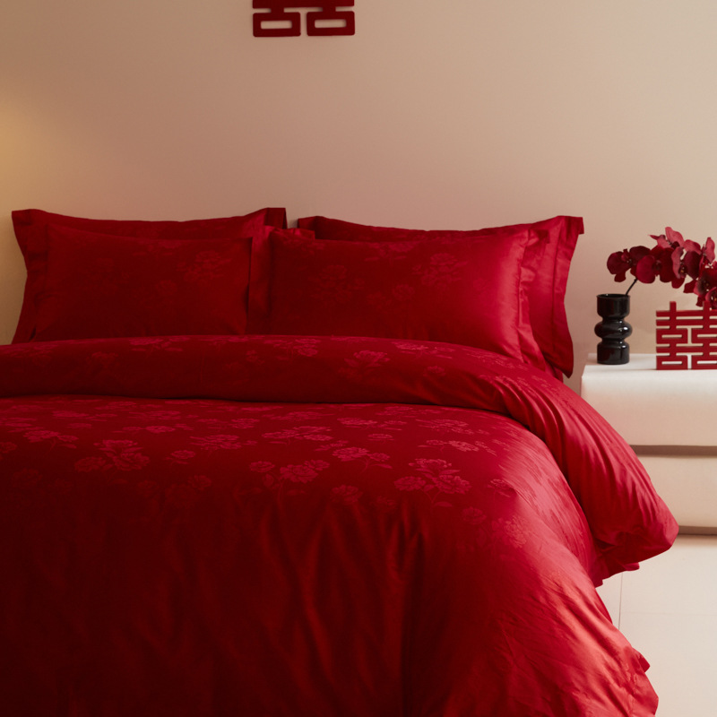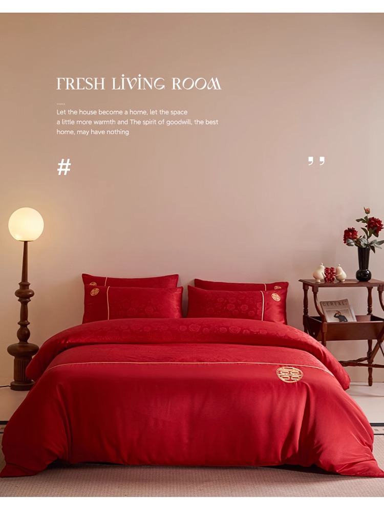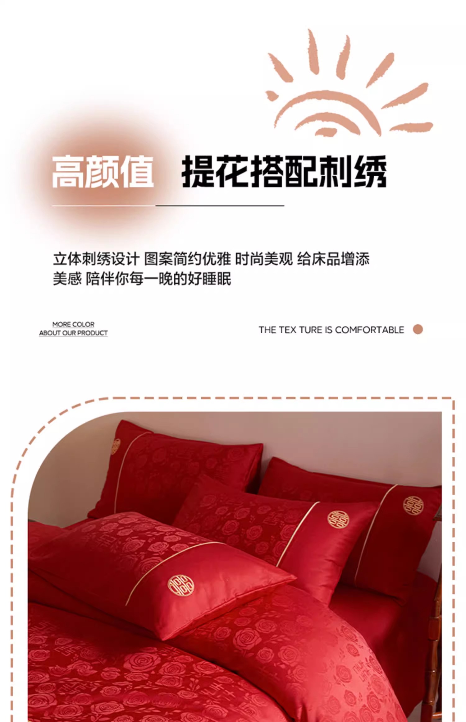 Высококачественный жаккардовый свадебный комплект из четырех предметов, свадебная большая красная свадебная кровать, постельное белье, пододеяльник, принадлежности для молодоженов, свадебное одеяло, простыни
