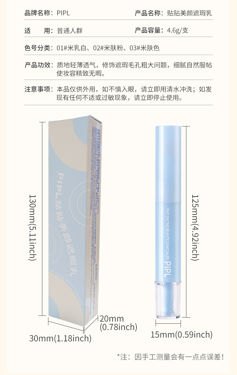 Крем-консилер PIPL Увлажняющий и осветляющий консилер, покрывающий пятна, следы от прыщей и темные круги Консилер-ручка Cross-Border