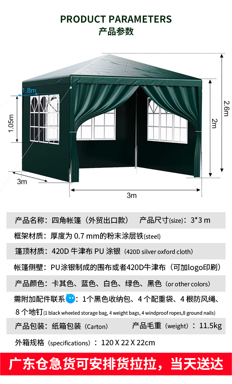 3*3 зеленый (одиночная палатка); 3*3 синий (одиночная палатка); 3*3 хаки (одиночная палатка); 3*3 белый (одиночная палатка); 3*3 черный (одиночная палатка); 3*3 красный (одиночная палатка); 3*3 зеленый (включая ткань); 3*3 синий (включая ткань); 3*3 хаки (включая ткань); 3*3 белый (включая ткань); 3*3 черный (включая ткань); 3*3 красный (включая ткань)