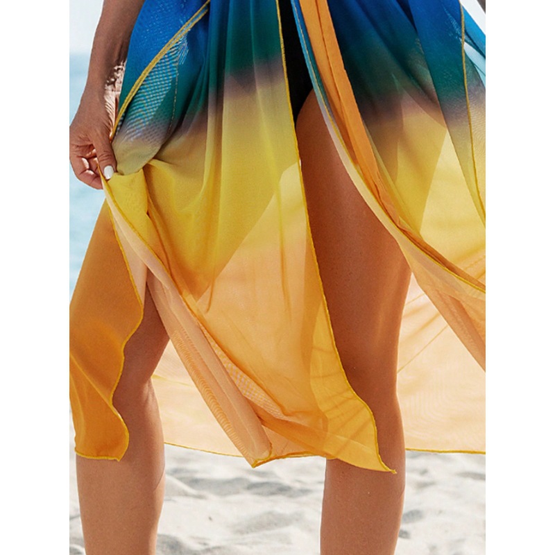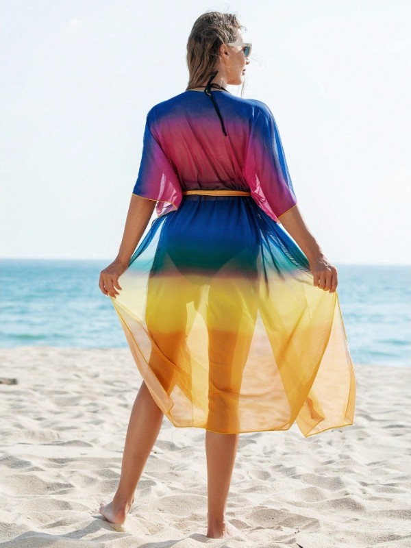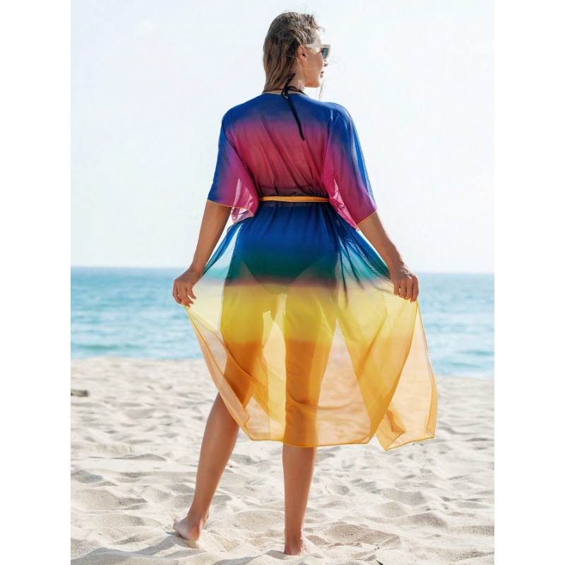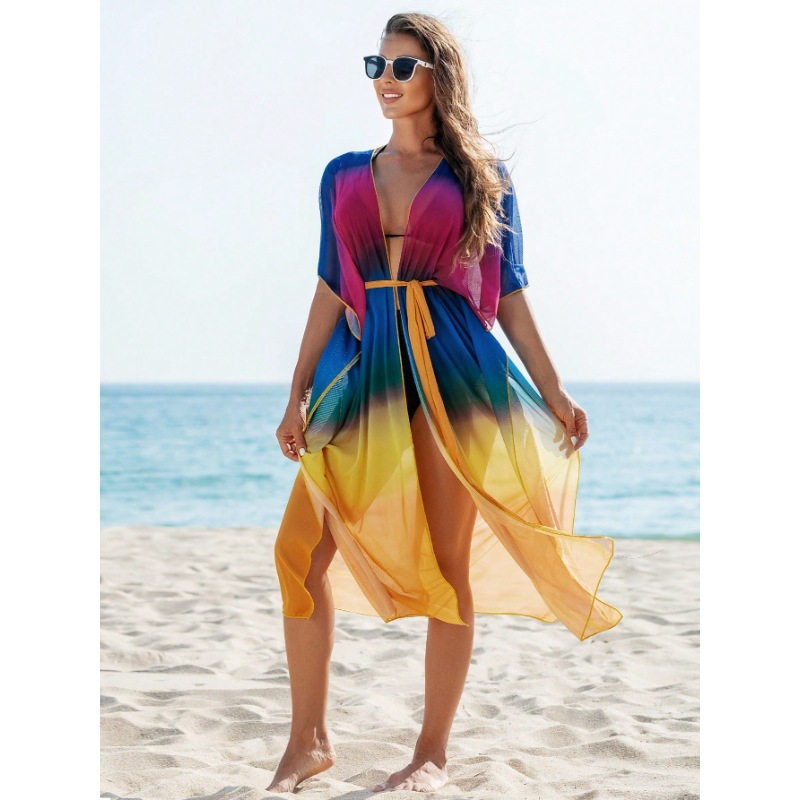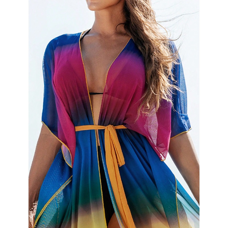 Шифоновый кардиган с радужным градиентом, повседневная пляжная накидка для отдыха, женская рубашка для защиты от солнца, накидка на купальник