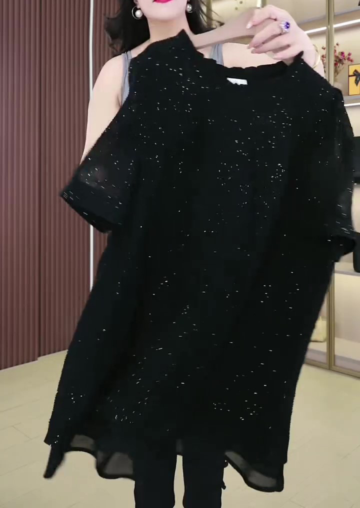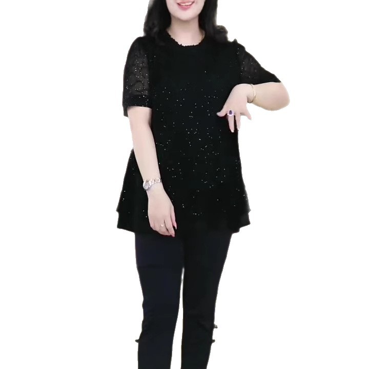 Летняя новая мода высокого класса легкий и блестящий шелк свободный большой размер тонкий шифон кружевная футболка рубашка толстая мама девушка