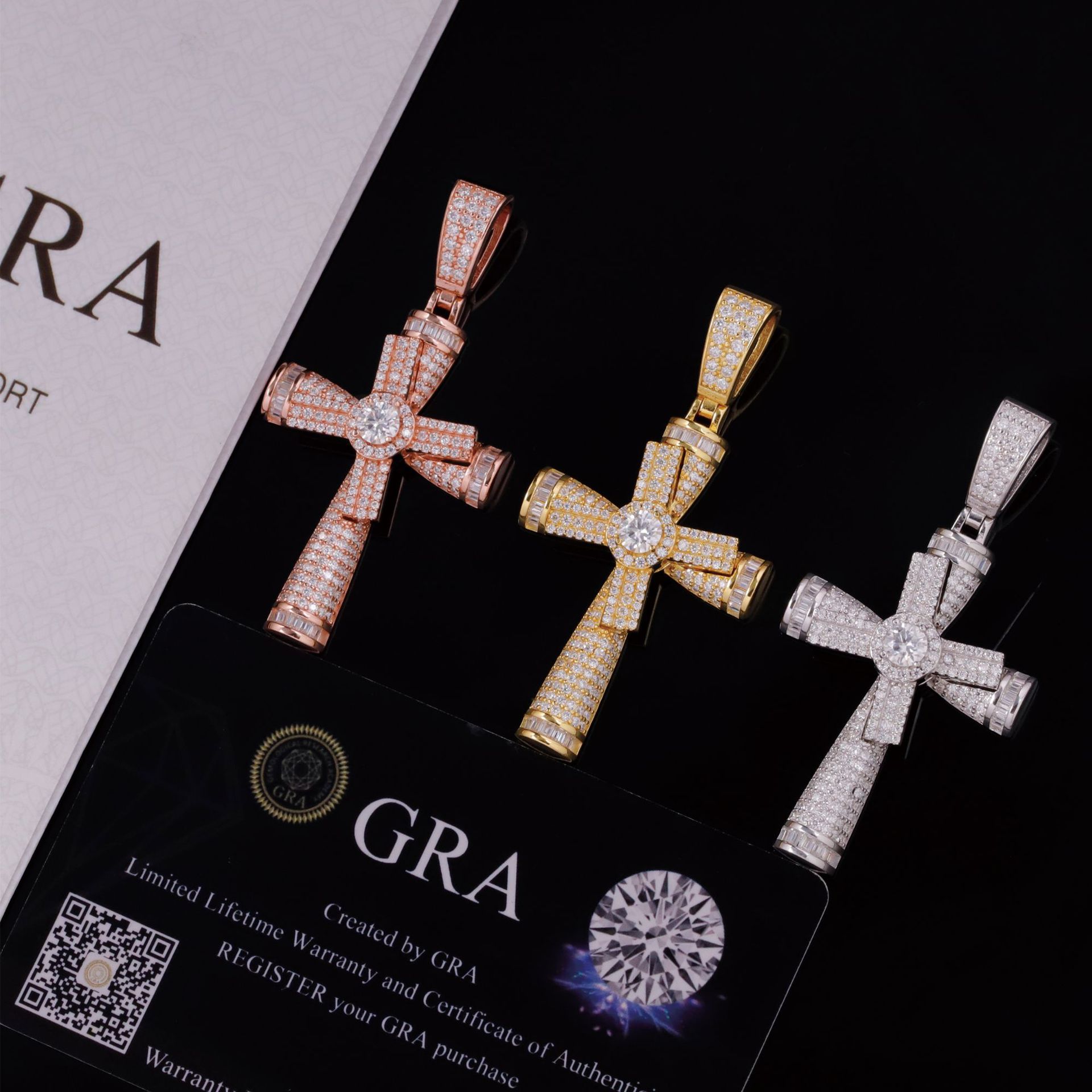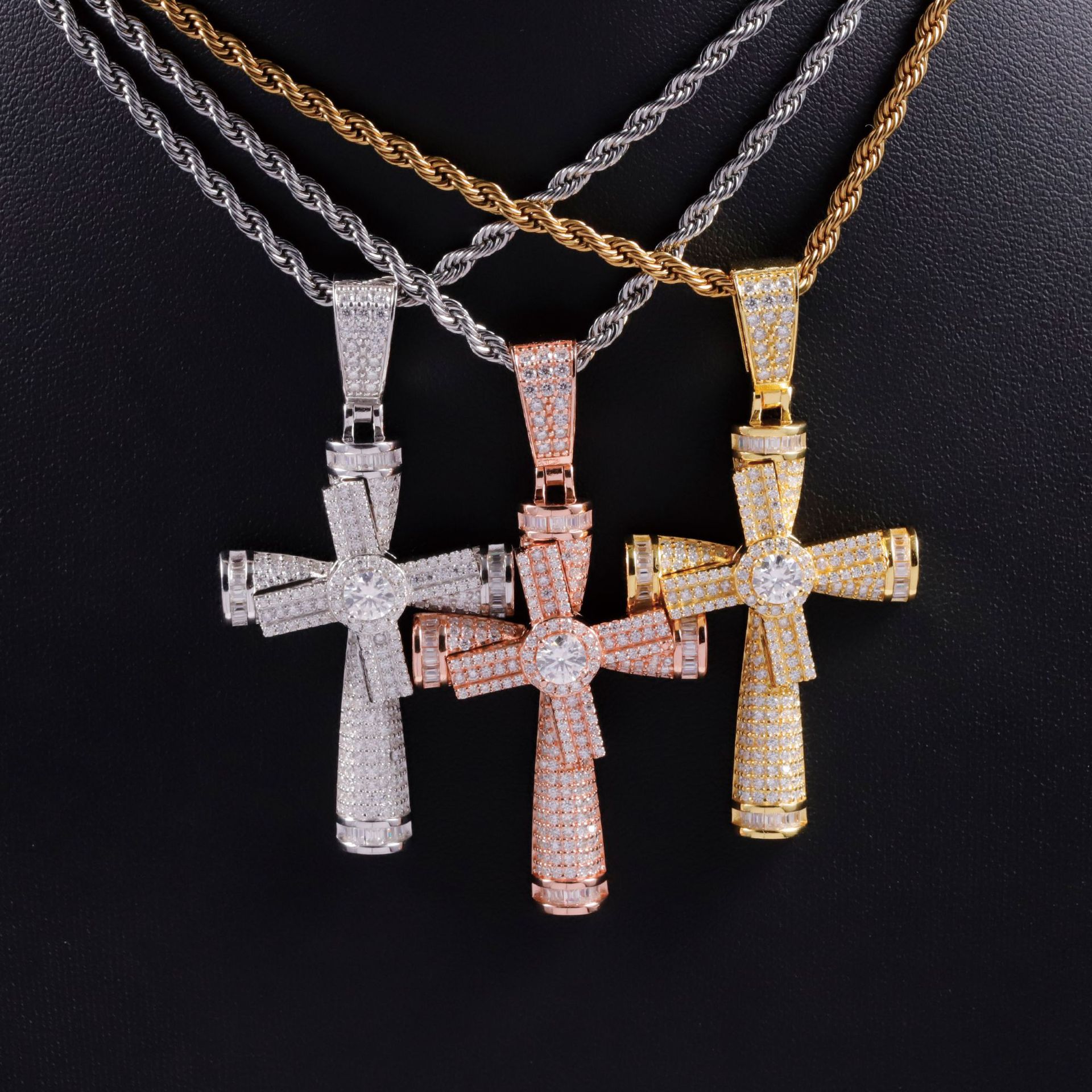 Нишевый крестик-кулон из серебра S925 с инкрустацией из муассанита, европейский и американский модный стильный вращающийся кулон-подвеска