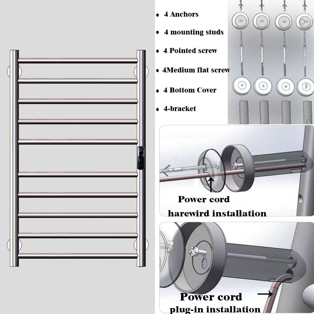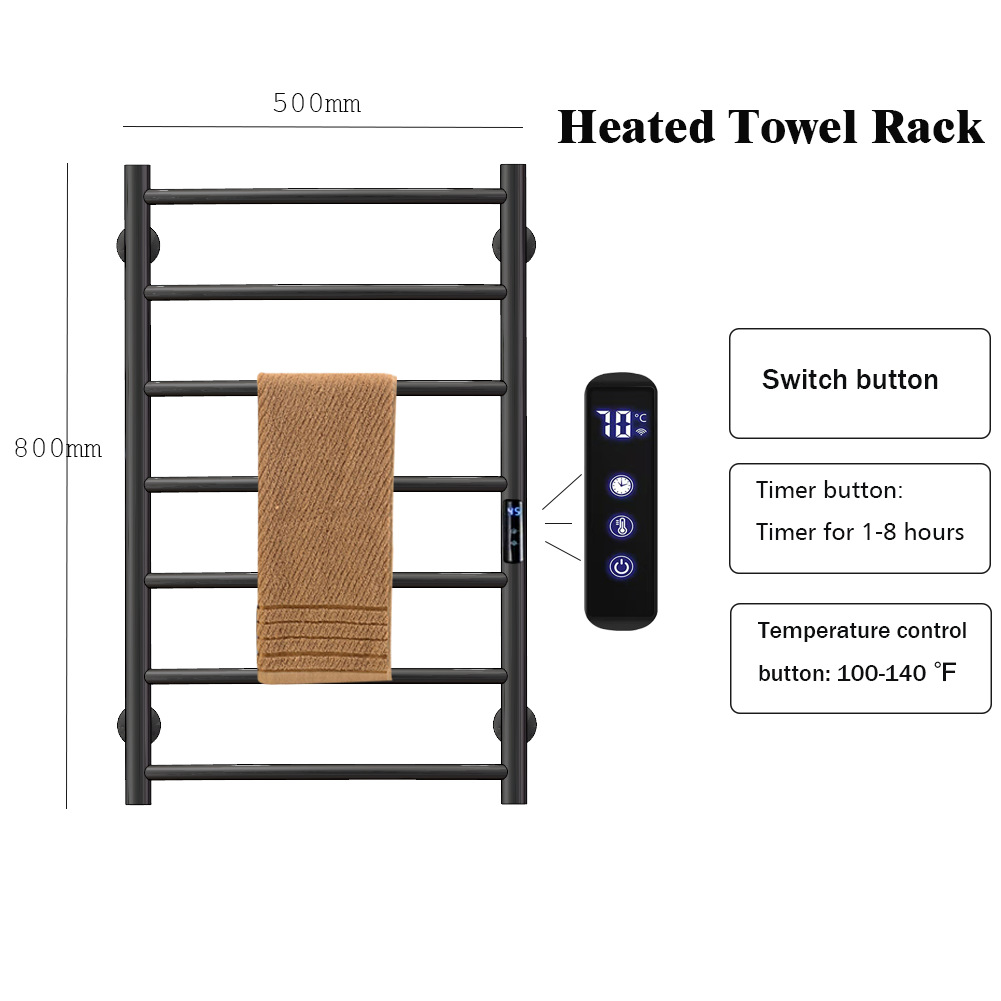 Интеллектуальная электрическая вешалка для полотенец с подогревом из нержавеющей стали, сушилка для полотенец для ванной комнаты, электрическая вешалка для полотенец с подогревом из углеродного волокна