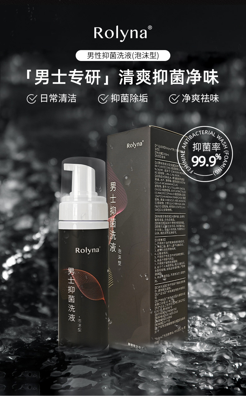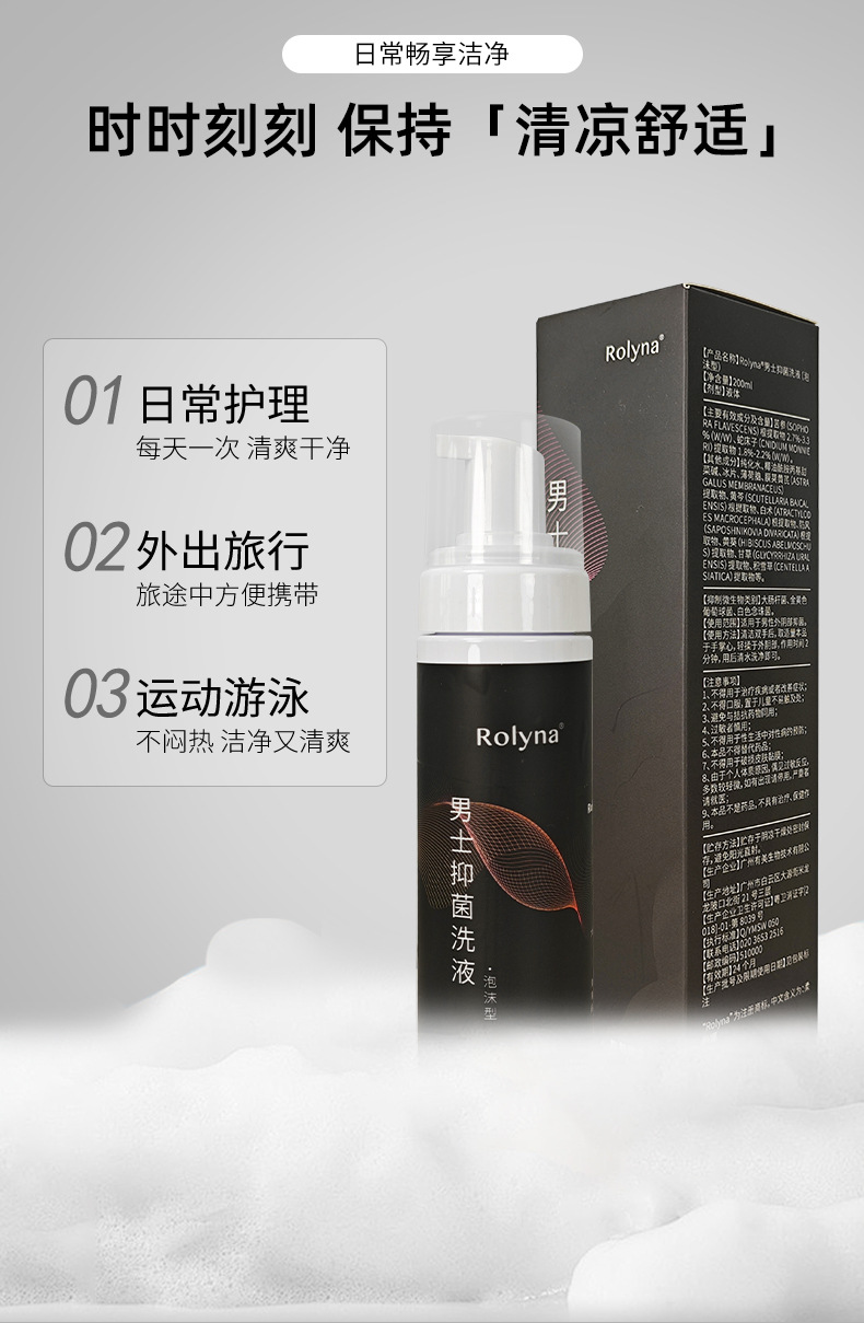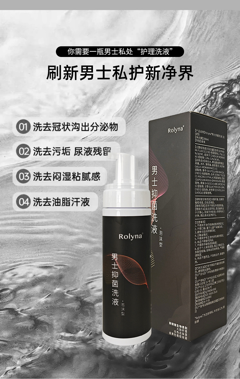 Rouliena Men's Care Solution Private Antibacterial Wash Private Cleaning Liquid Mousse Мужское частное средство для мытья оптом