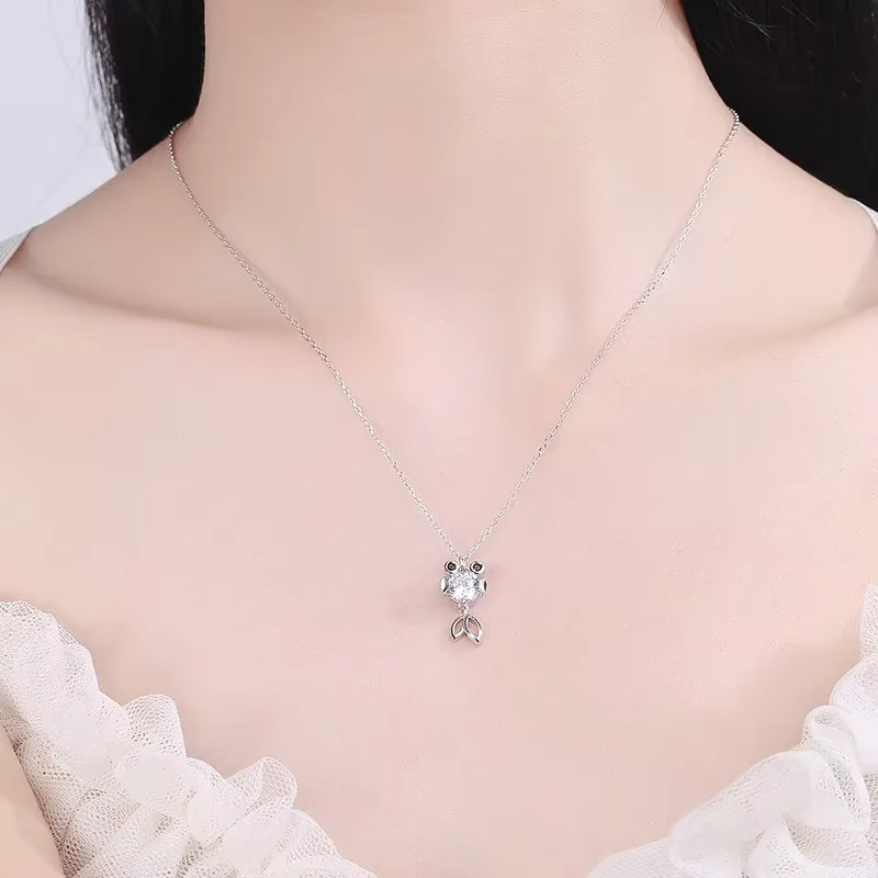 Серебро 925 пробы, инкрустированное культивированным бриллиантом весом 1–1,05 карата цвета D VS, ожерелье с золотой рыбкой, простая и модная маленькая свежая цепочка на ключицу