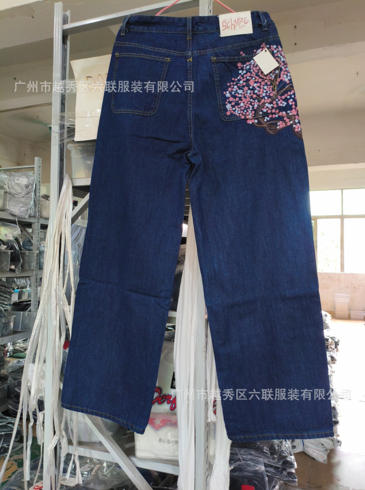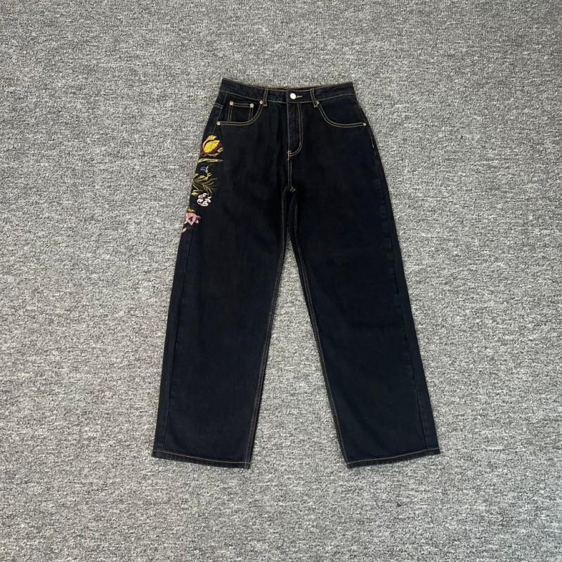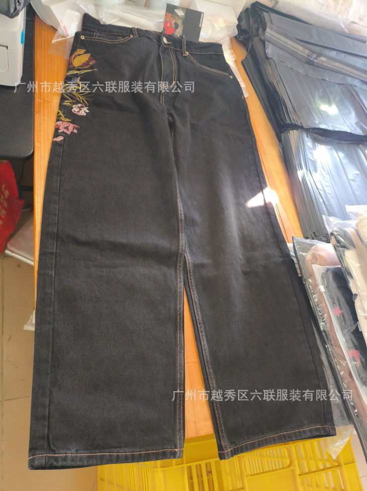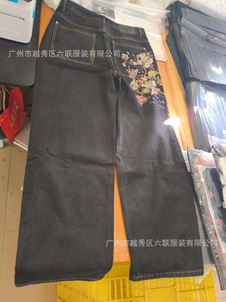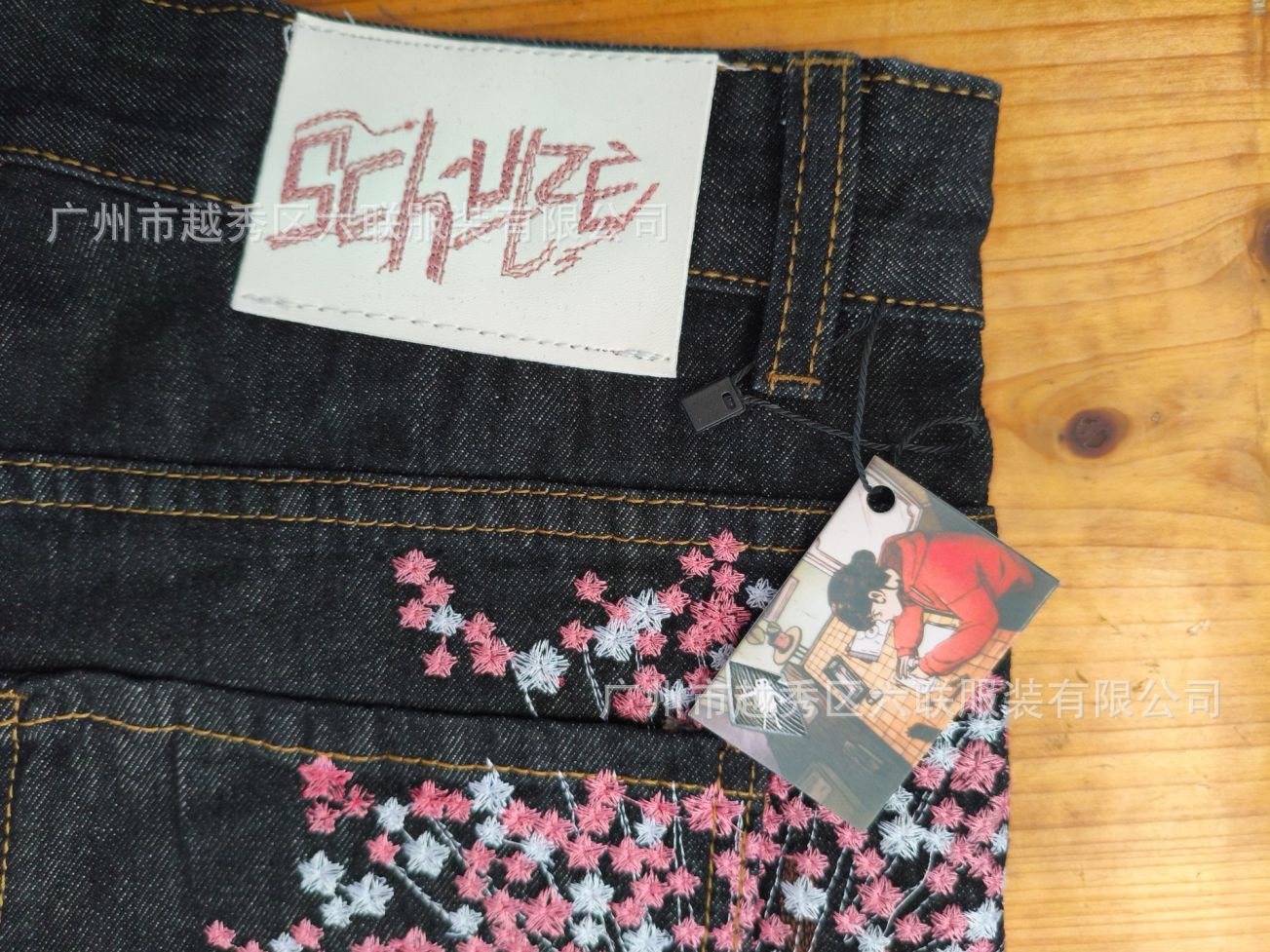 derschutze Прямые брюки с вышивкой в стиле ретро в европейском и американском стиле для мужчин и женщин, универсальные и персонализированные уличные модные джинсы для трансграничных продаж.