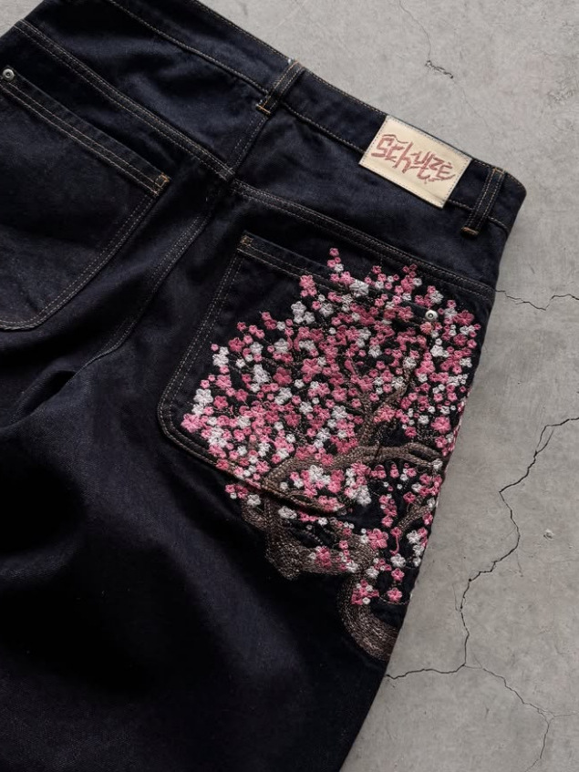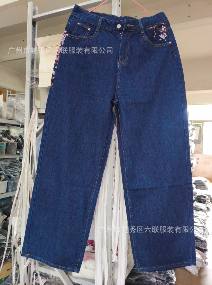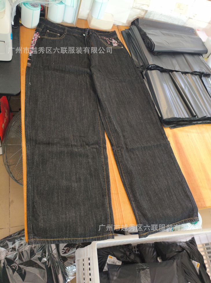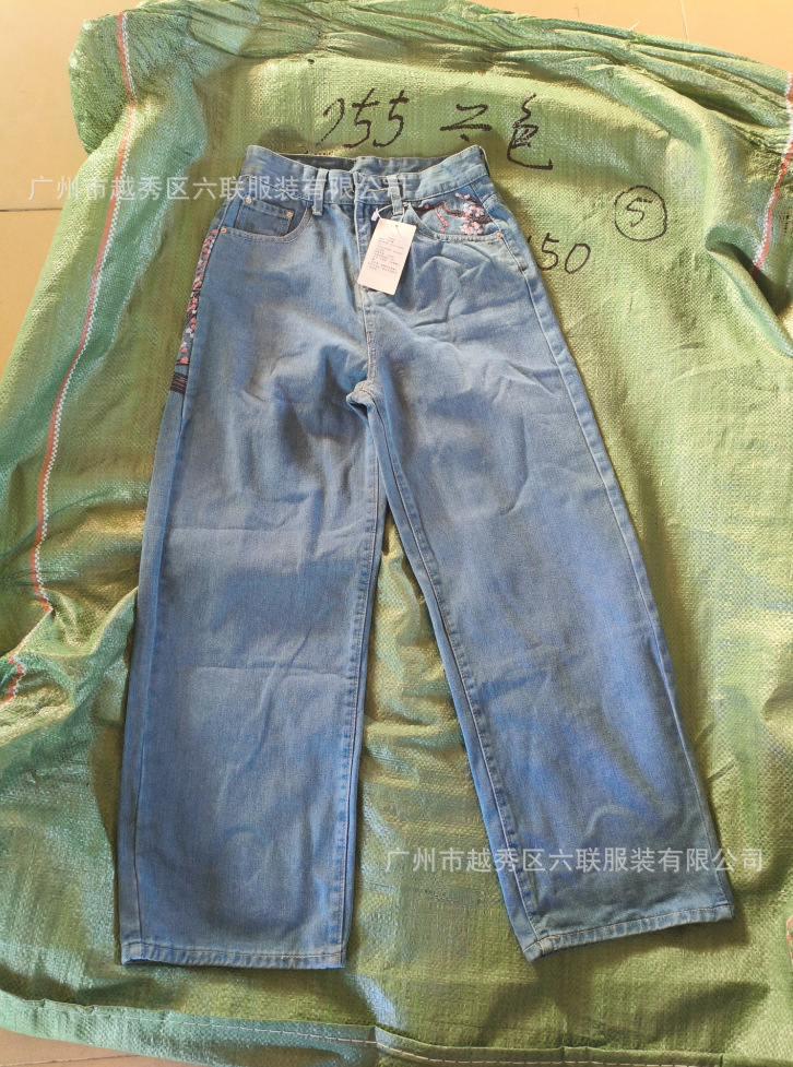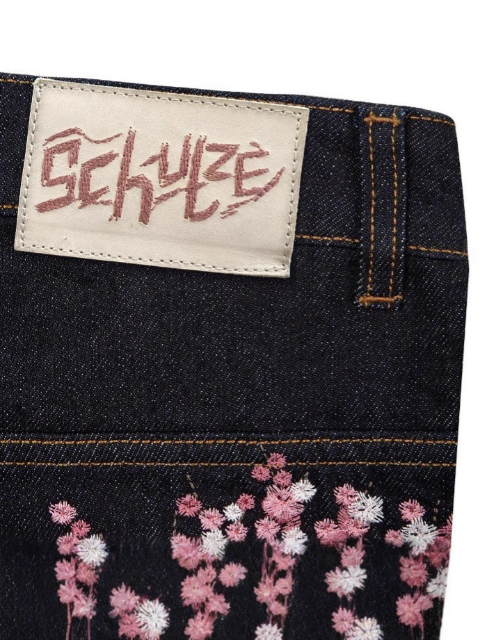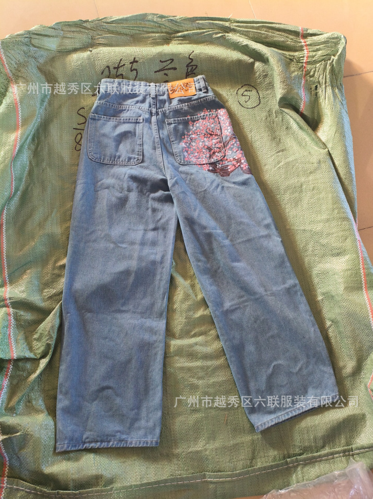derschutze Прямые брюки с вышивкой в стиле ретро в европейском и американском стиле для мужчин и женщин, универсальные и персонализированные уличные модные джинсы для трансграничных продаж.