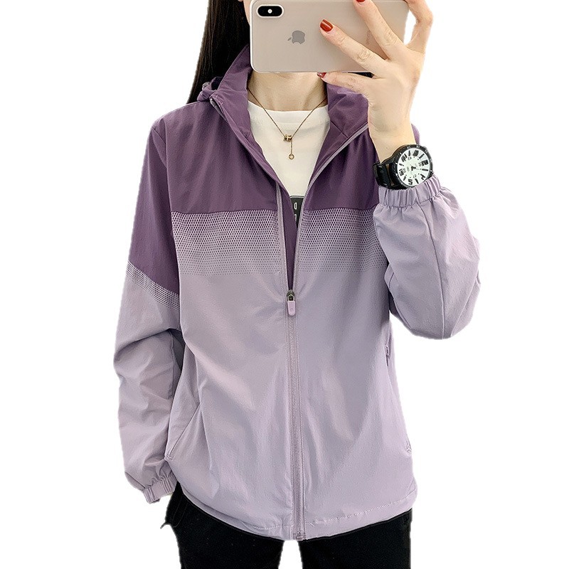 Весенне-осенняя тонкая спортивная ветровка, женская уличная быстросохнущая дышащая эластичная куртка с капюшоном на сетчатой подкладке с защитой от ультрафиолета