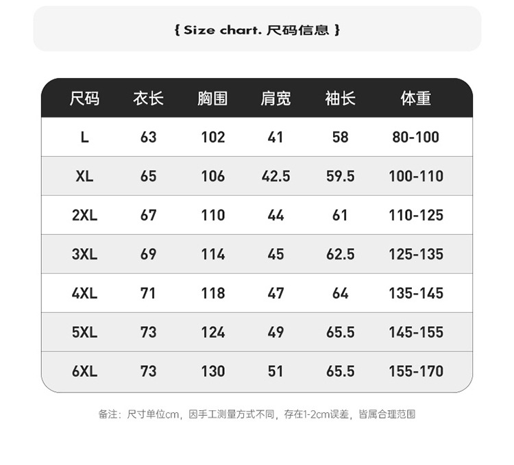 L; XL; XXL; 3XL; 4XL; 5XL; 6XL