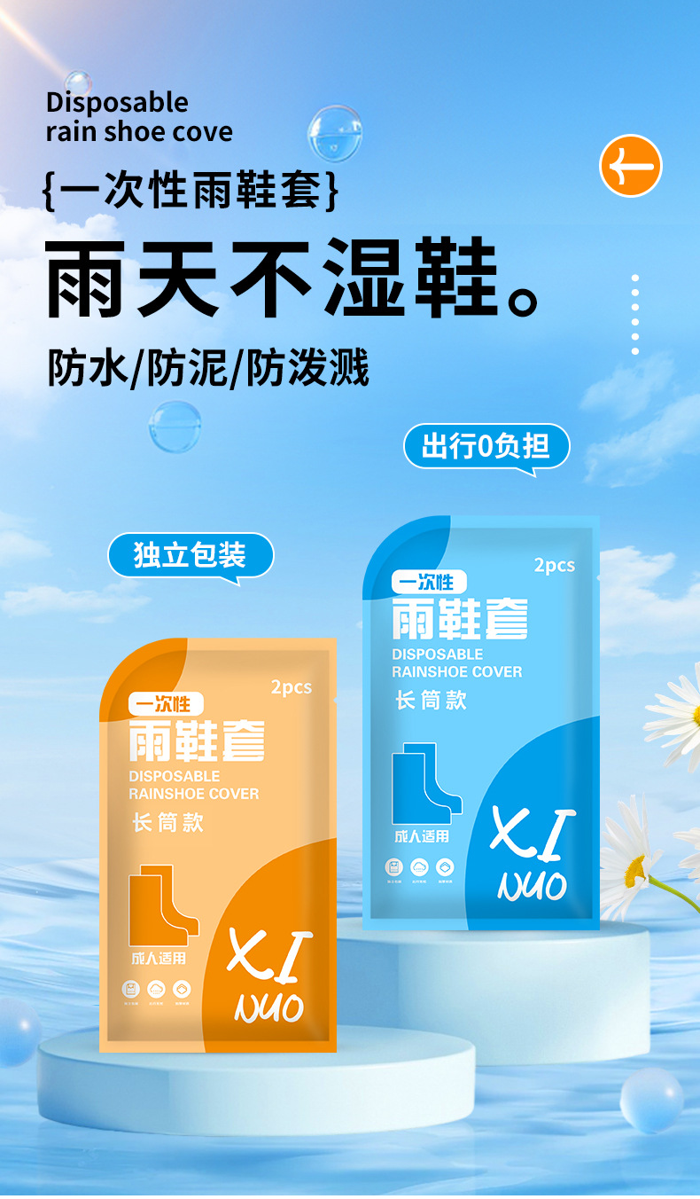 Индивидуально упакованные одноразовые чехлы для обуви от дождя, водонепроницаемые, утолщенные, нескользящие, износостойкие, непромокаемые чехлы для ног на дождливый день, легко носить с собой.