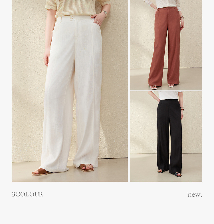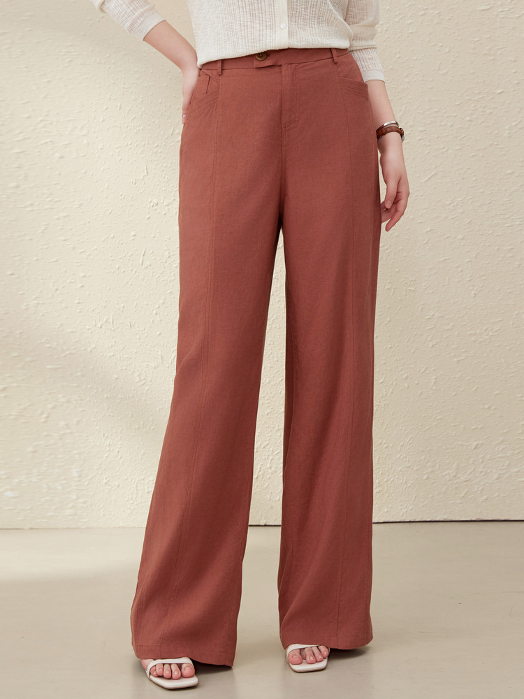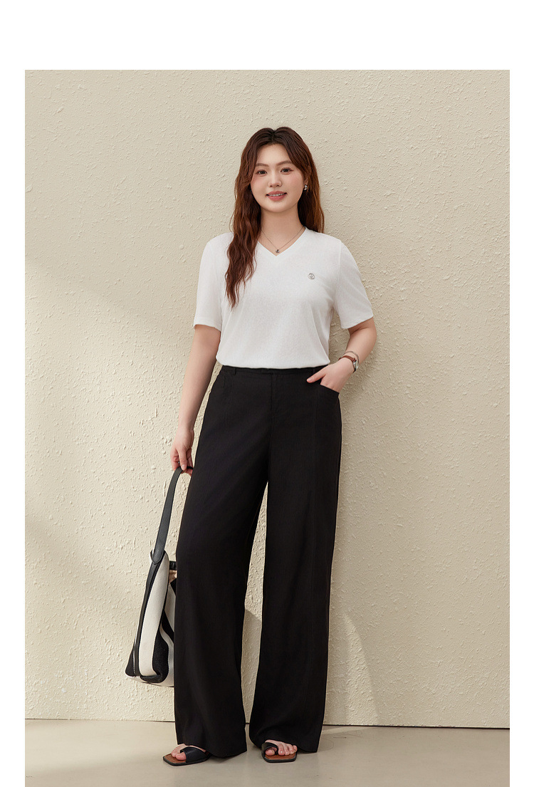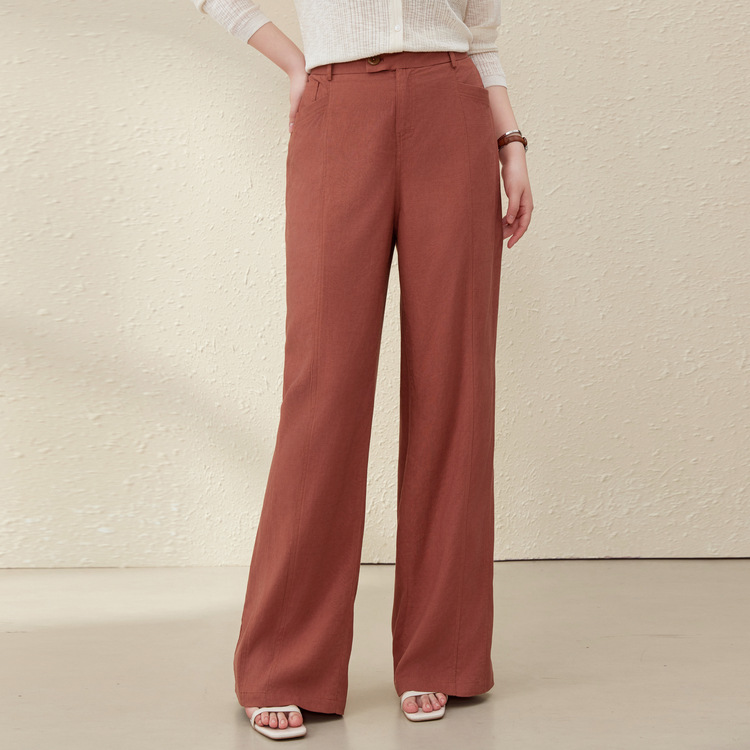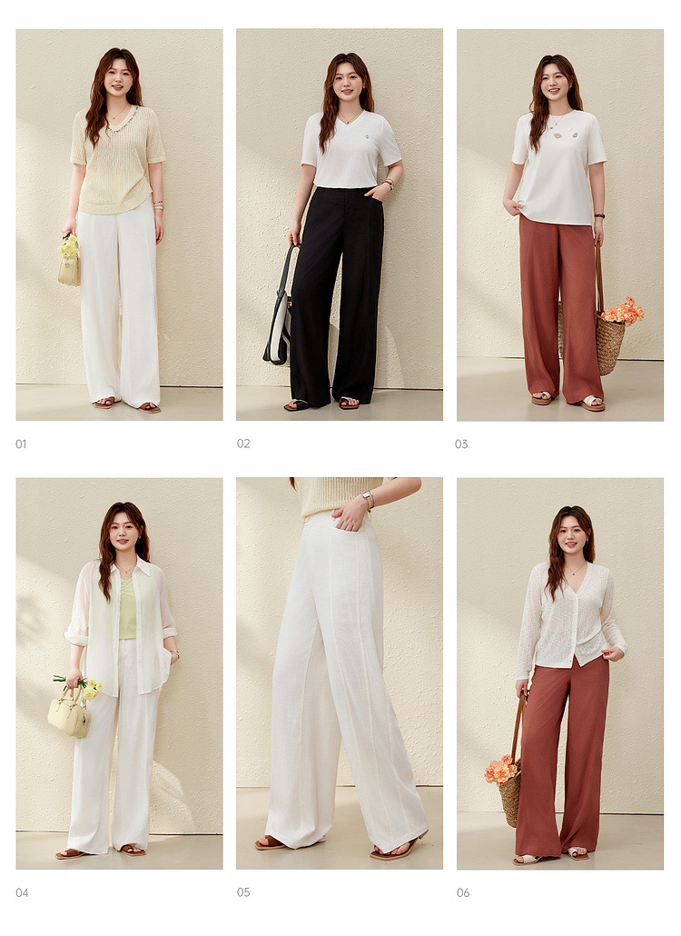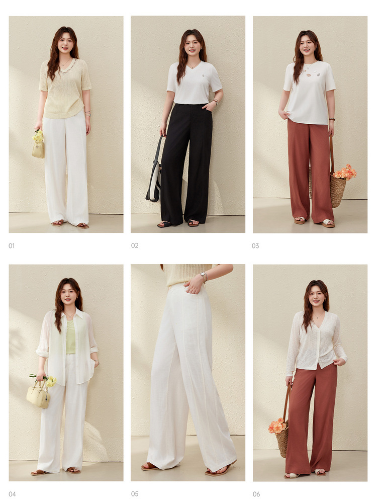 [Широкие брюки Air-feel] Дышащие брюки из смесового льна, тонкая и яркая женская одежда больших размеров для полных мм, лето 2025, новый стиль