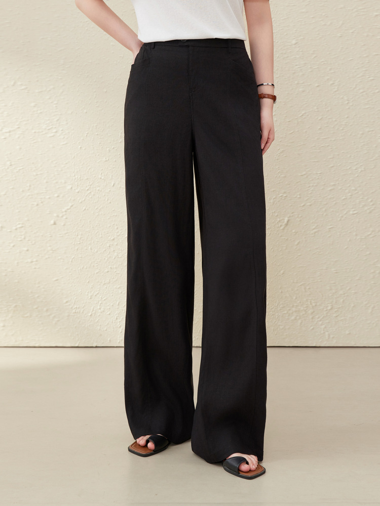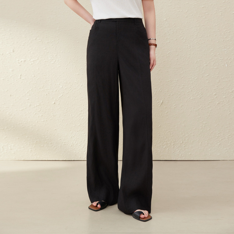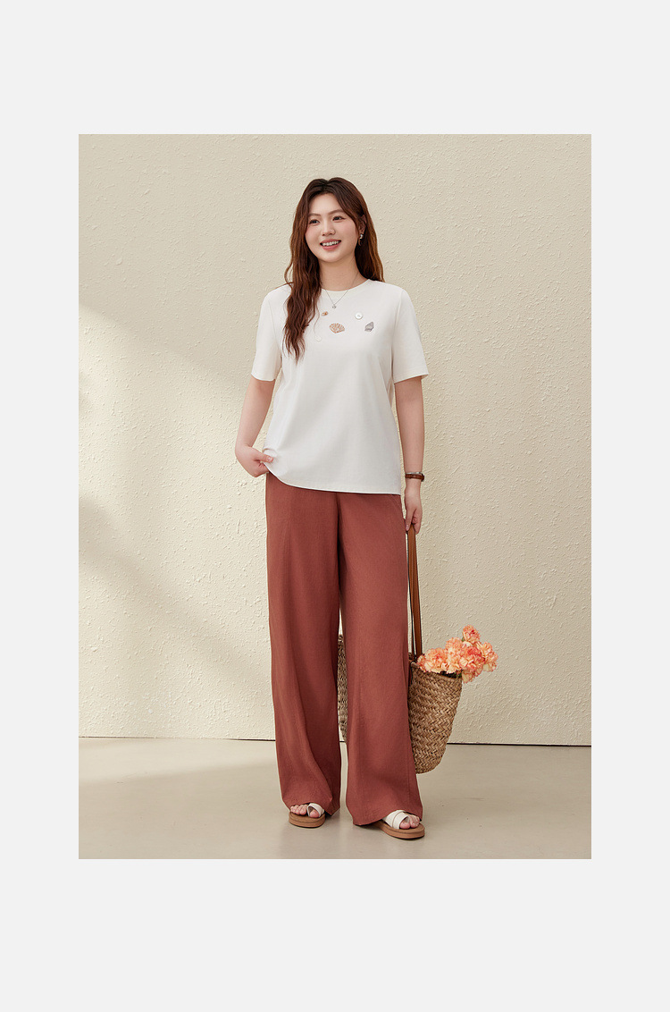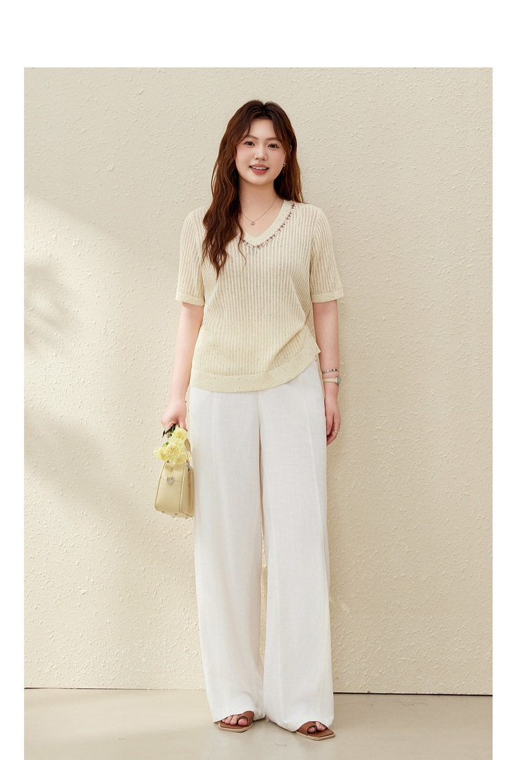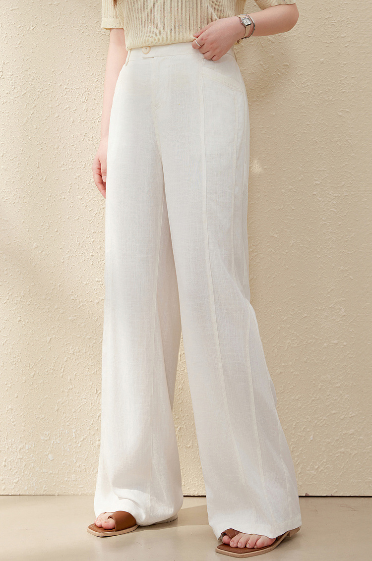 [Широкие брюки Air-feel] Дышащие брюки из смесового льна, тонкая и яркая женская одежда больших размеров для полных мм, лето 2025, новый стиль