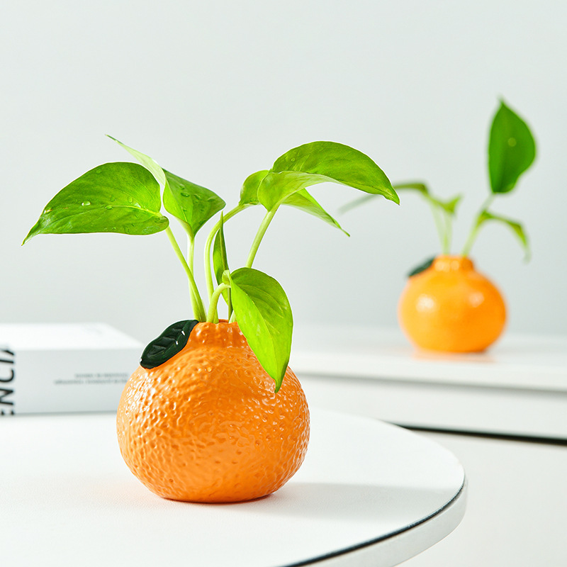 Простая оранжевая маленькая ваза украшение гостиной цветочная композиция гидропонное растение цветы зеленый укроп креативные поделки для украшения рабочего стола
