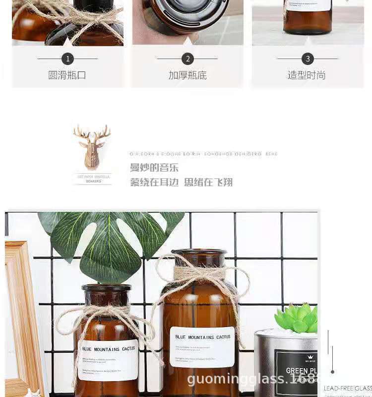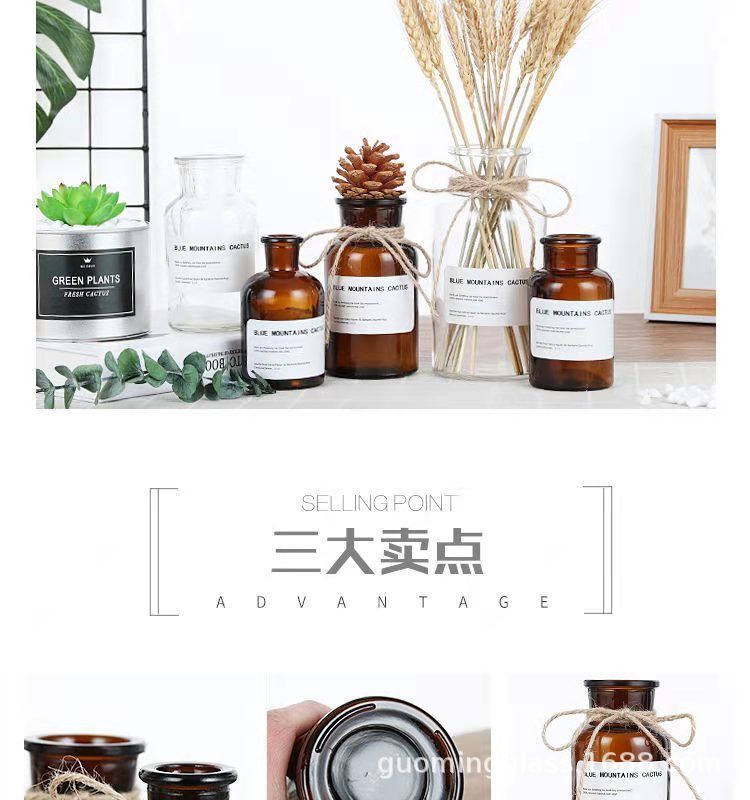 Пятно прозрачная стеклянная ваза в европейском стиле гидропонная ваза с коричневым коричневым сухим цветком маленькая ваза для съемки реквизита бутылка
