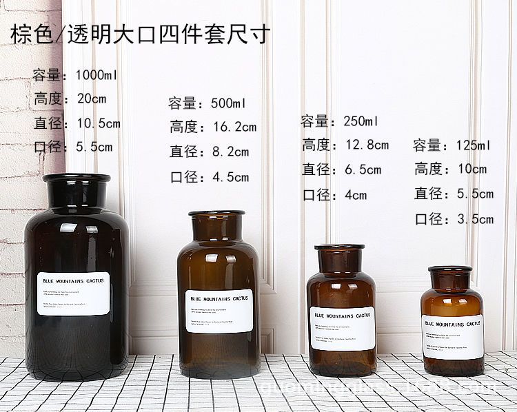125 мл коричневого цвета с большим горлышком; 125 мл коричневый маленький ротик; 125 мл прозрачный стиль с большим ртом; 125 мл прозрачный маленький рот; 250 мл коричневого цвета с большим горлышком; 250 мл коричневый маленький ротик; 250 мл прозрачный стиль с большим ртом; 250 мл прозрачный маленький ротик; 500 мл коричневого цвета с большим горлышком; 500 мл коричневый маленький рот; 500 мл прозрачный стиль с большим ртом; 500 мл прозрачный маленький рот; 1000 мл коричневого цвета с большим горлышком; 1000 мл коричневый маленький ротик; 1000 мл прозрачный стиль с большим ртом; 1000 мл прозрачный маленький рот