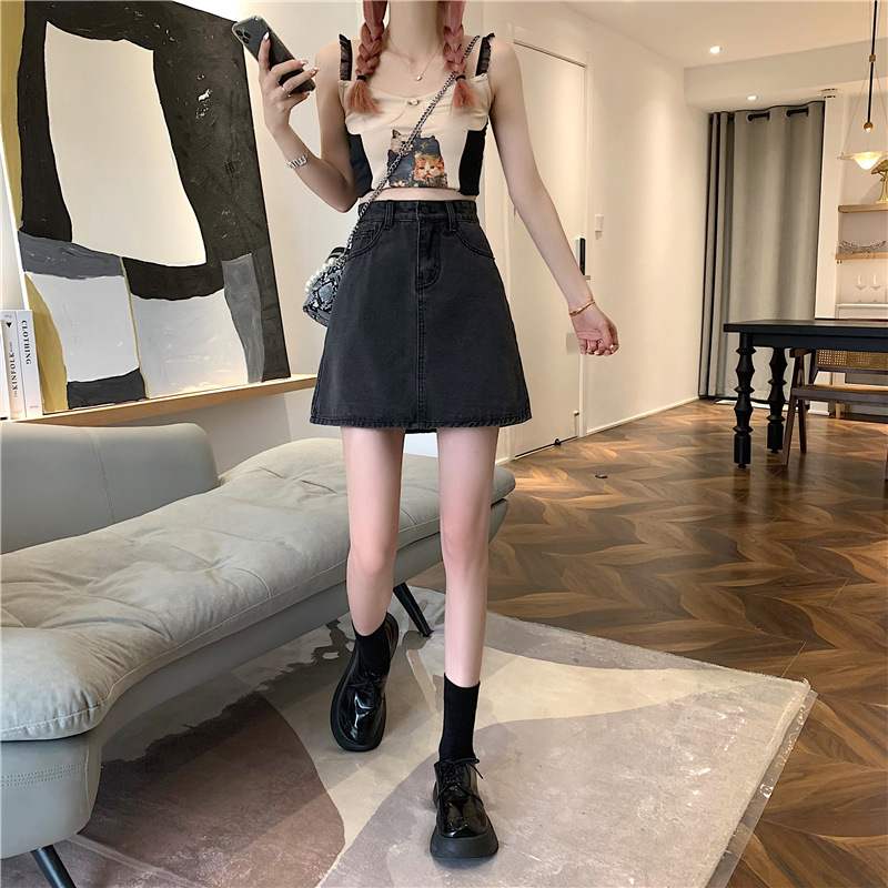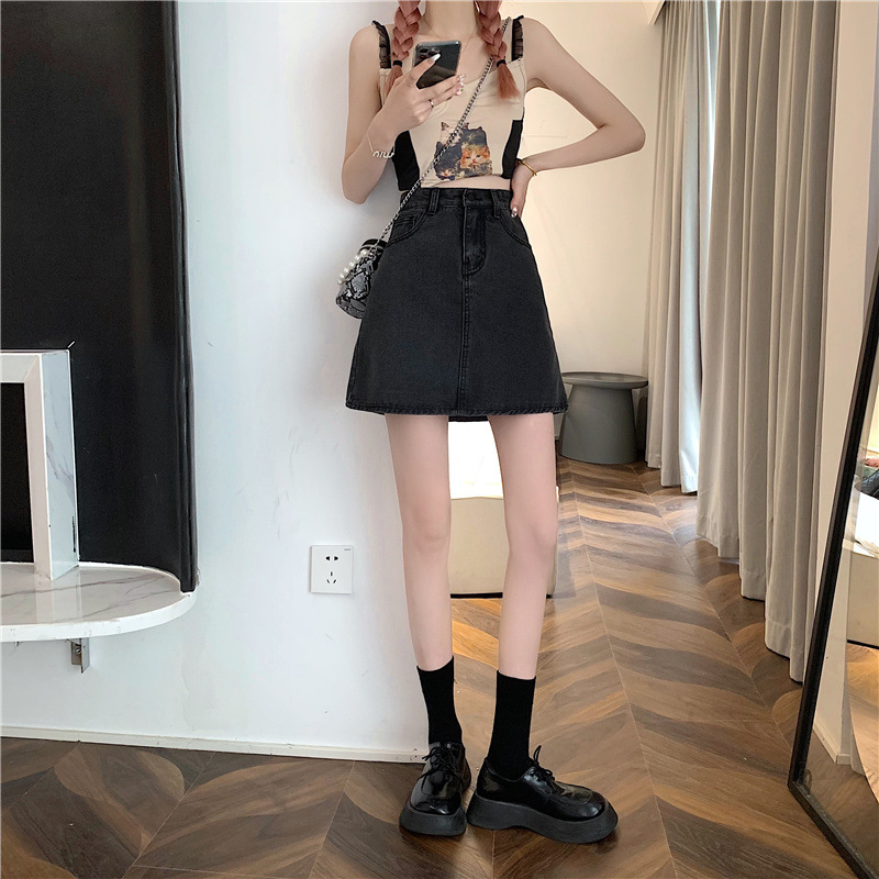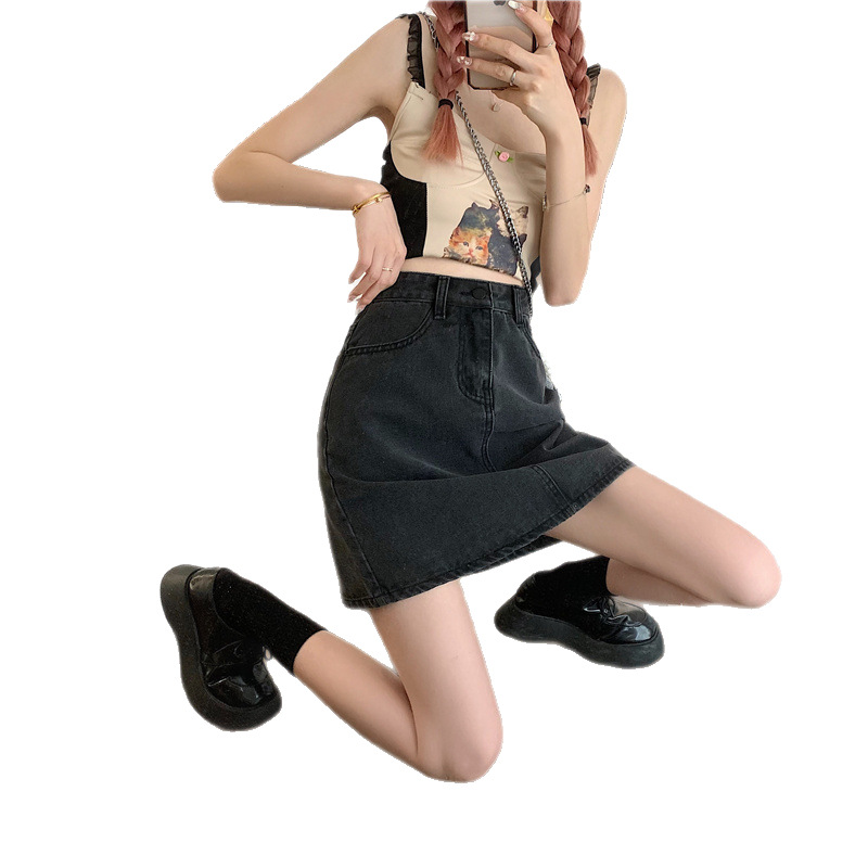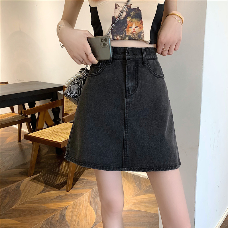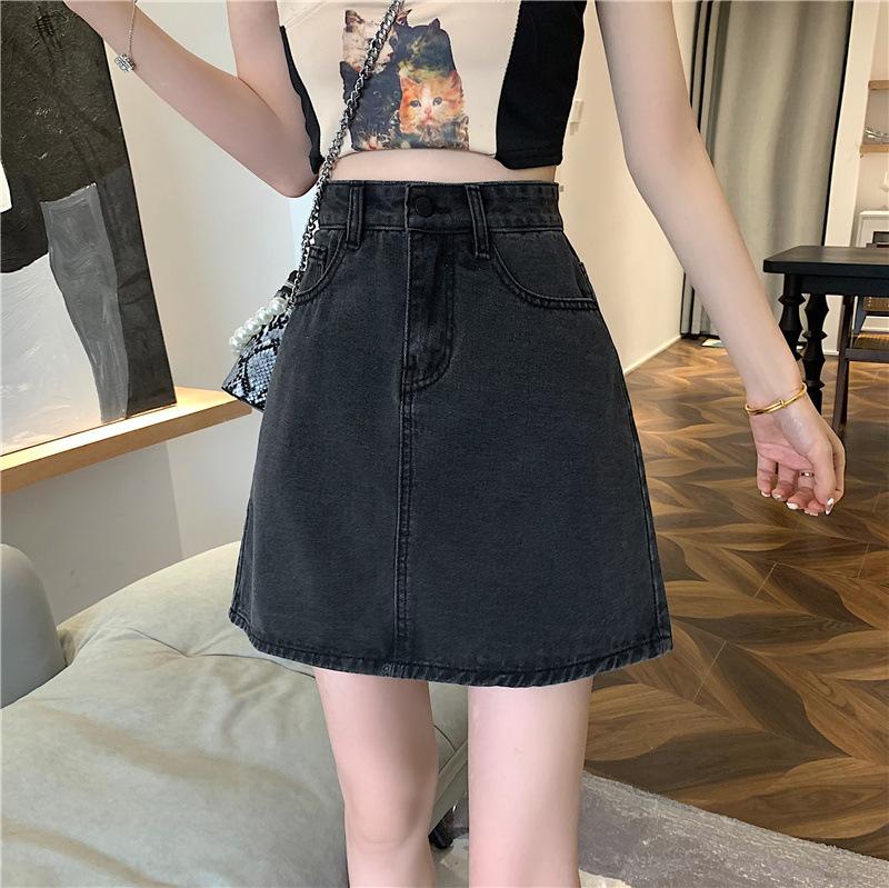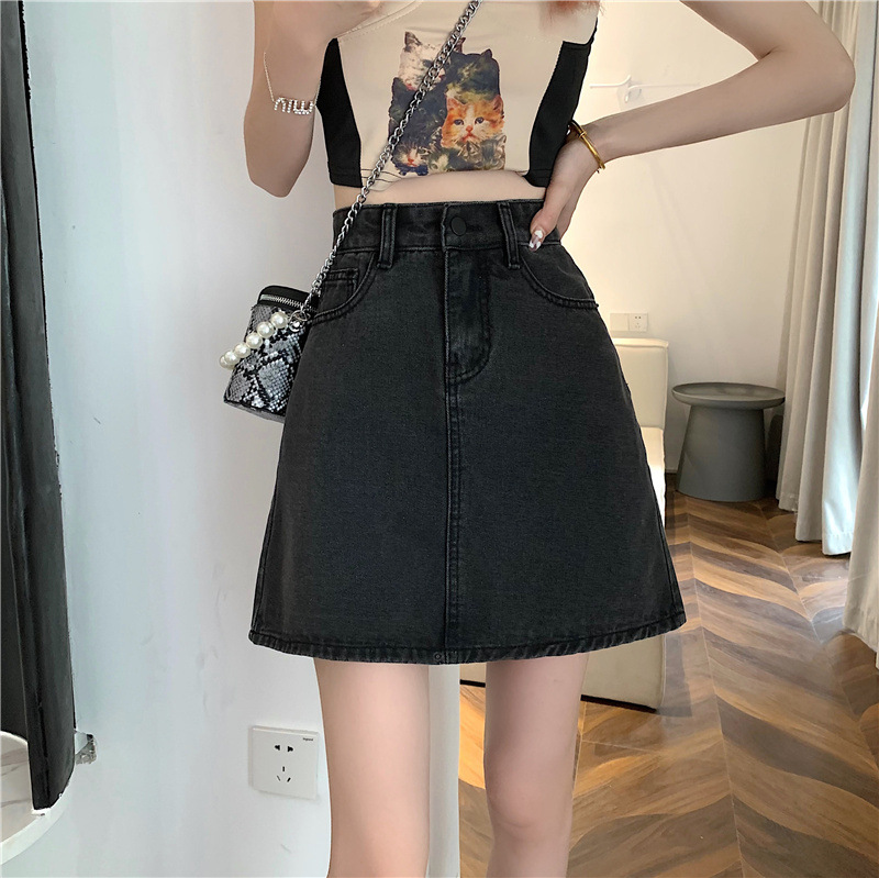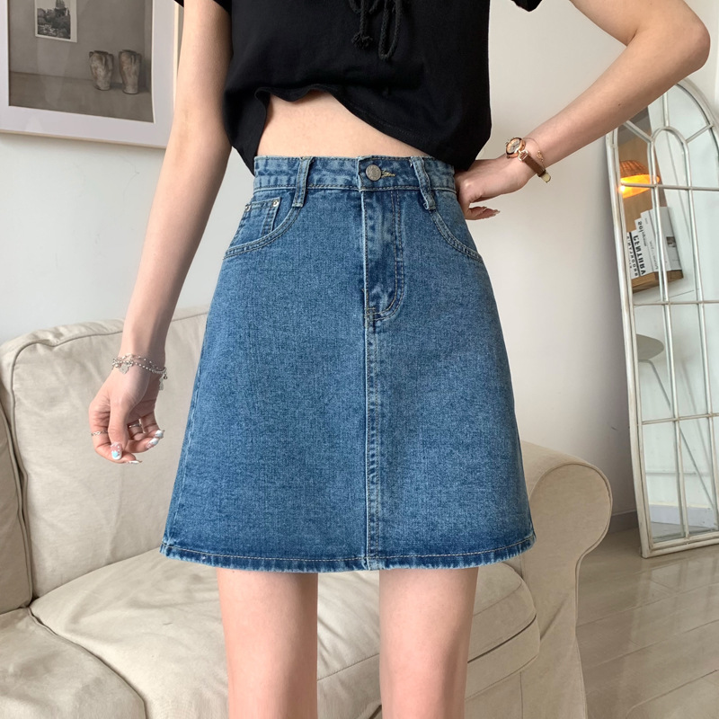 Ретро джинсовая юбка с высокой талией женское весеннее 2025 новое дикое тонкое слово короткая юбка большого размера бедра юбка