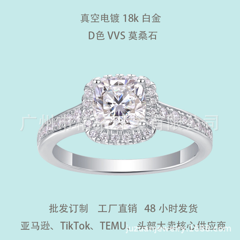 Кросс-бордерная прямая трансляция Amazon TEMU: горячая распродажа, кольцо с моассанитом цвета D, огненное, закрытое, доступное роскошное универсальное кольцо