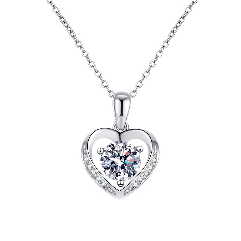Серебряное колье 925 пробы с подвеской в форме сердца 1-1,05 карата, вечное сердце, серебряный кулон, цвет D, чистота VS, культивированный бриллиант, цепочка на ключицу