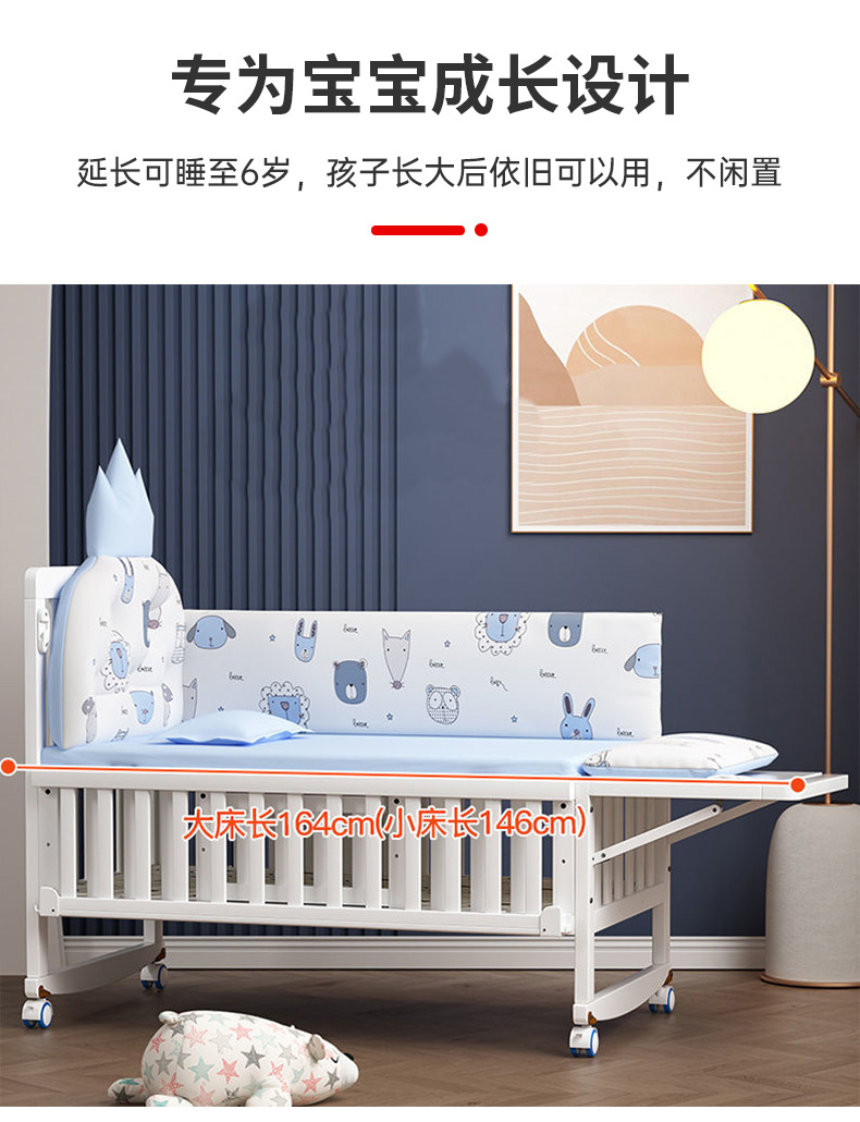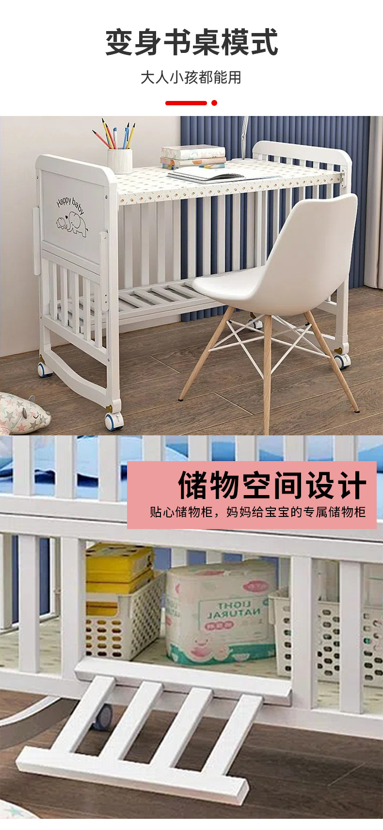 Белая кроватка в европейском стиле из массива дерева, съемная многофункциональная люлька с сокровищами, детская большая кровать для новорожденных, bb