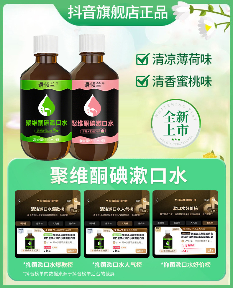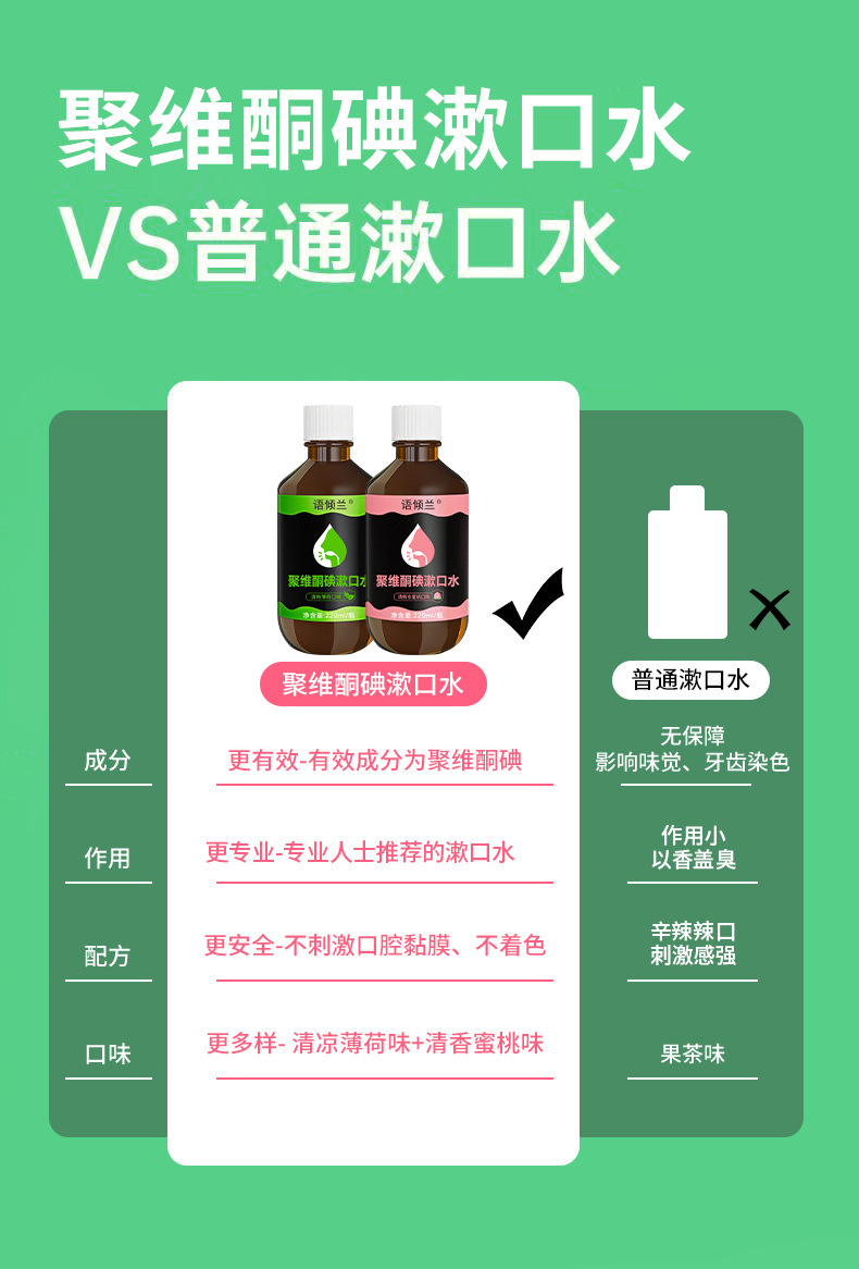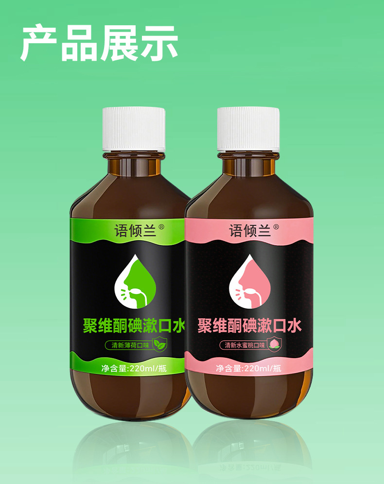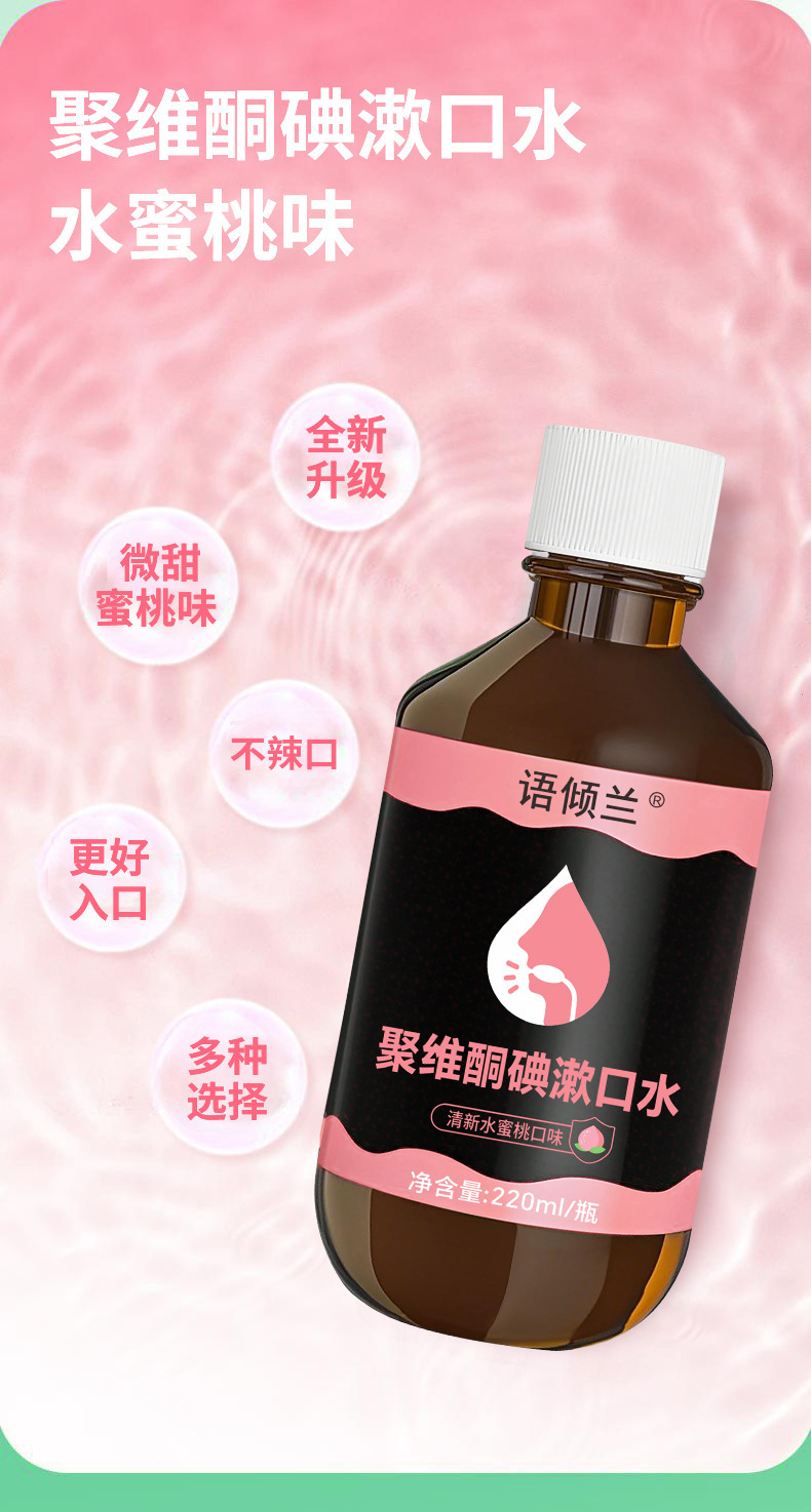 Ополаскиватель для рта Yuqinglan с пovidоном и йодом (свежевзеленый вкус); Ополаскиватель для рта Yuqinglan с пovidоном и йодом (аромат розового персика)