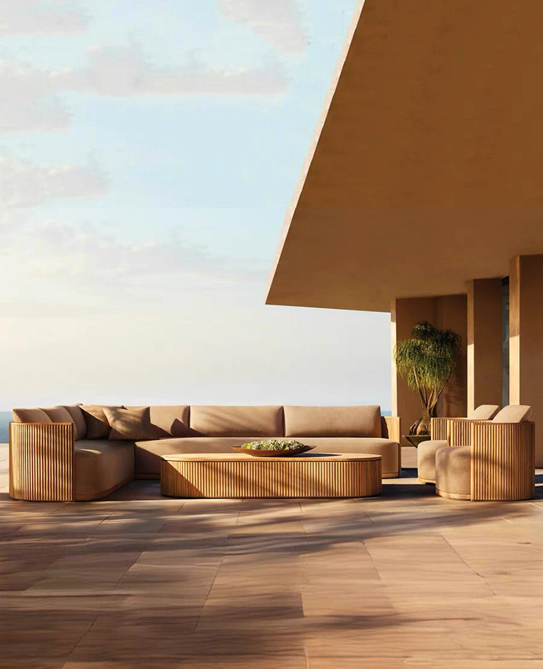 Открытый внутренний двор диван диван из тикового дерева Вилла открытый диван водонепроницаемый солнцезащитный крем открытый открытый открытый диван из массива дерева