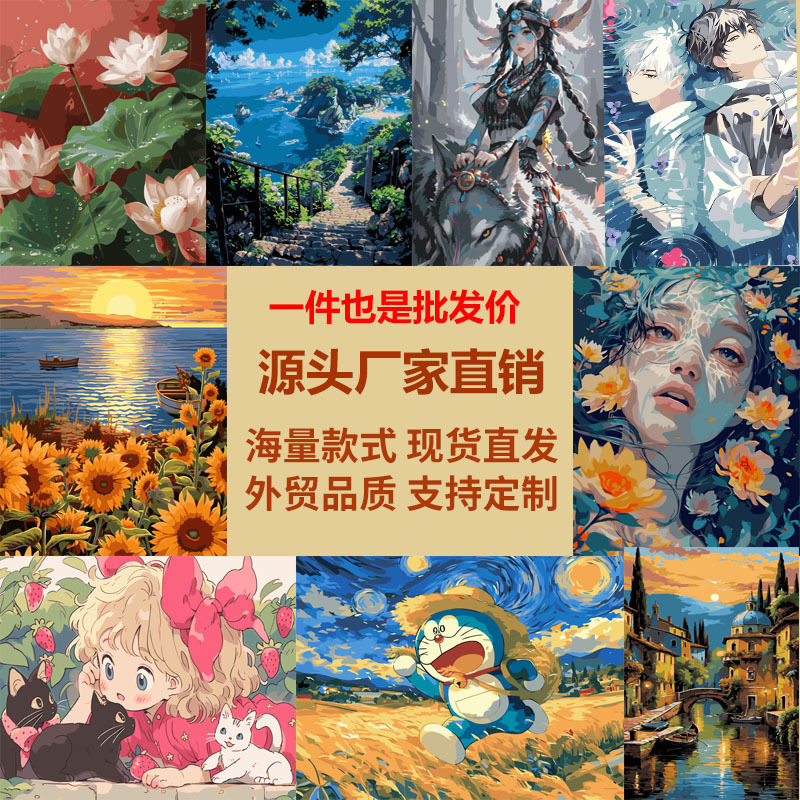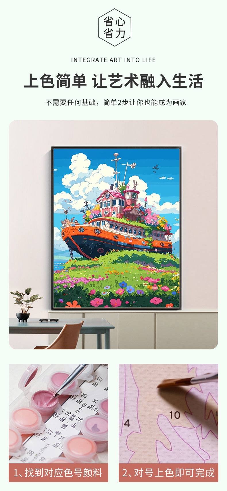 Производитель оптом diy цифровая живопись маслом излечивает цветы мультфильм пейзаж граффити ручной работы для детей декоративные висячие картины