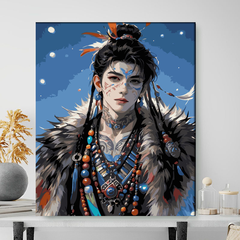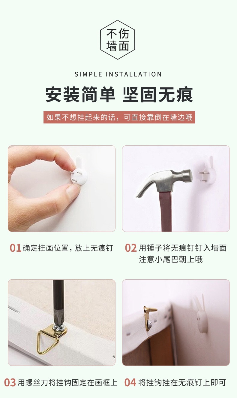 【产品配件】实木内框+颜料画笔(opp袋装):画布绷好内框的彩色画板+颜料+3支画笔+挂钩,opp袋包装
