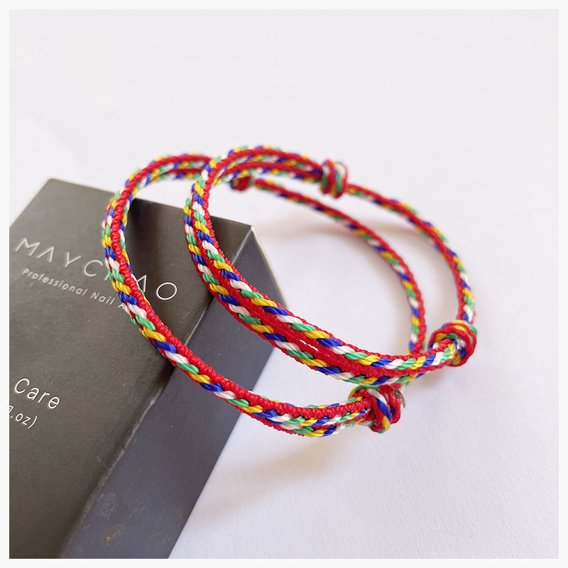 Красочная веревка Праздник лодок-драконов, ручной веревочный браслет, веревка для ног, браслет для мужчин и женщин, для маленьких детей, плетеная пятицветная пара, красная веревка на удачу