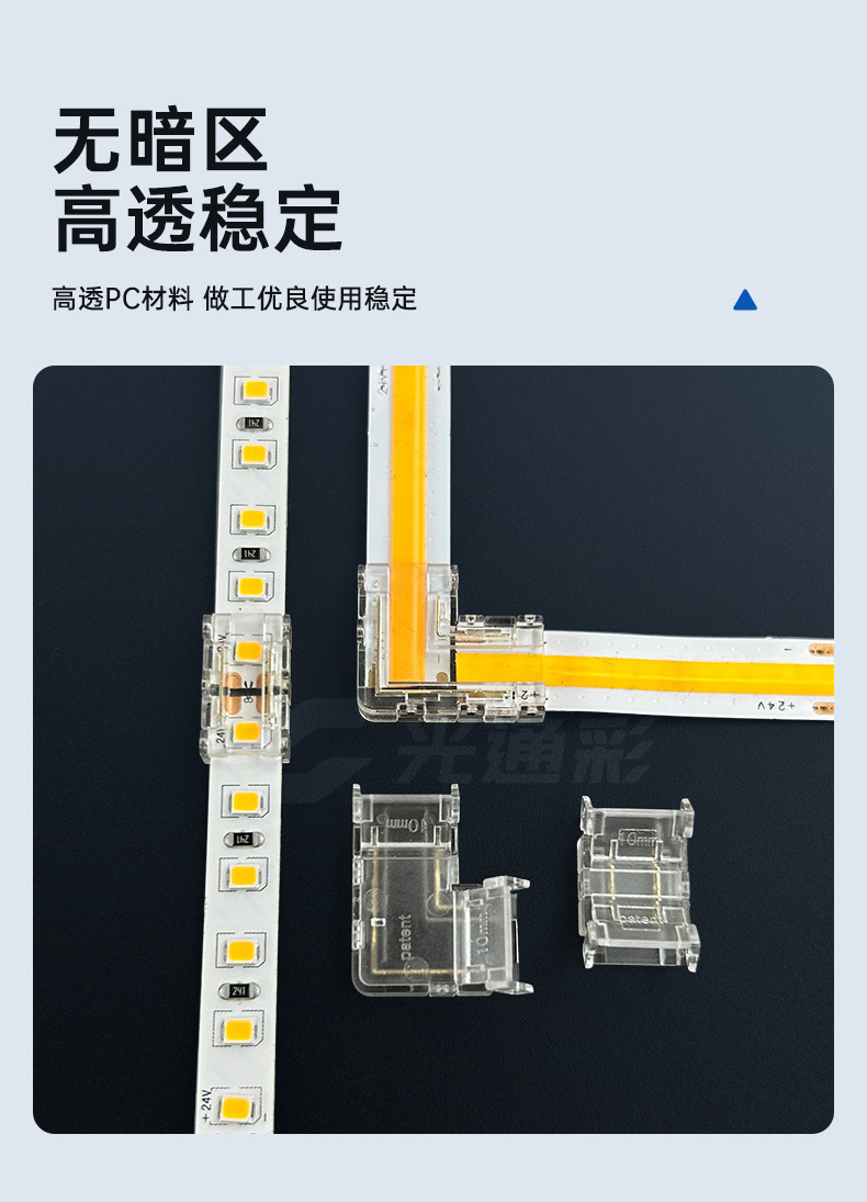 led灯带免焊接头连接器2pin低压cob转角对接头无暗区水晶头连接线