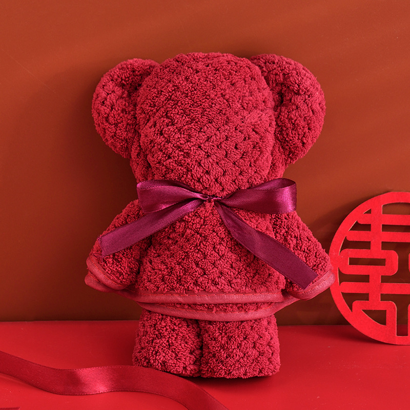 Полотенце с медведем и открыткой с надписью «Счастливый», поясное полотенце, свадебный сувенир, подарок на свадебный полнолуние, практичная подарочная коробка оптом