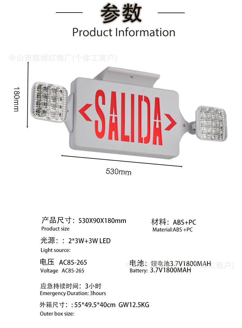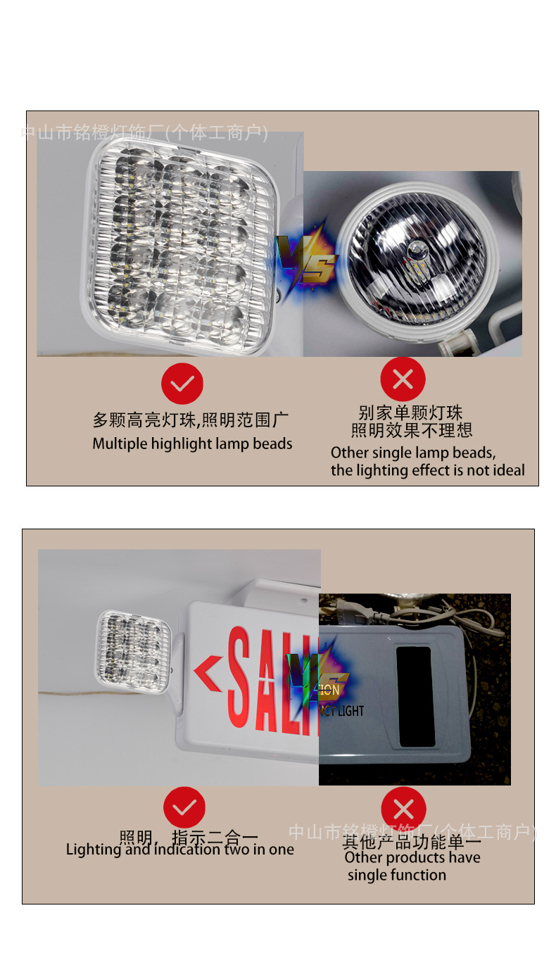 Аварийное освещение Два в одном аварийный выходной знак Светильник высокой яркости Светодиодный индикатор освещения Аварийное освещение Светодиодный