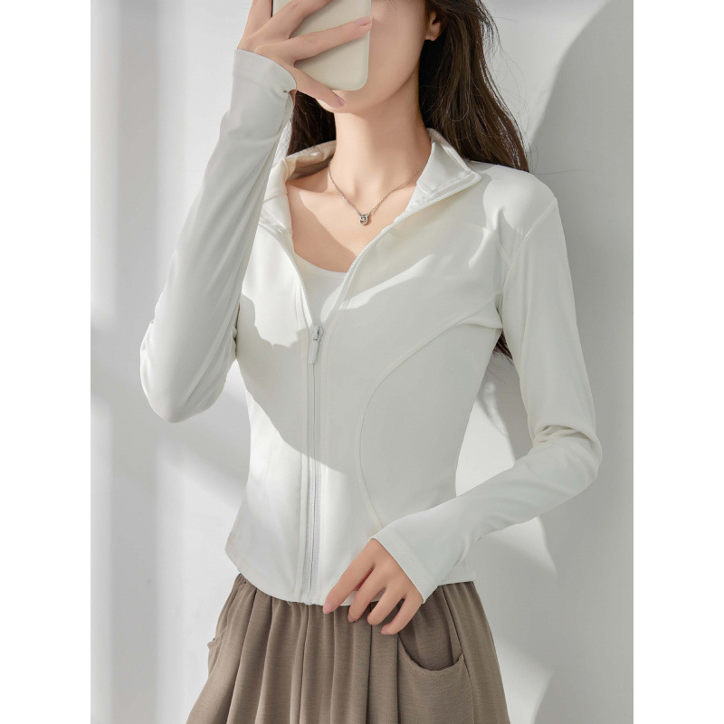 Спортивная куртка для йоги для женщин 2025, новая с длинным рукавом, защита от солнца, облегающая, стройнящая, для бега и фитнеса, топ