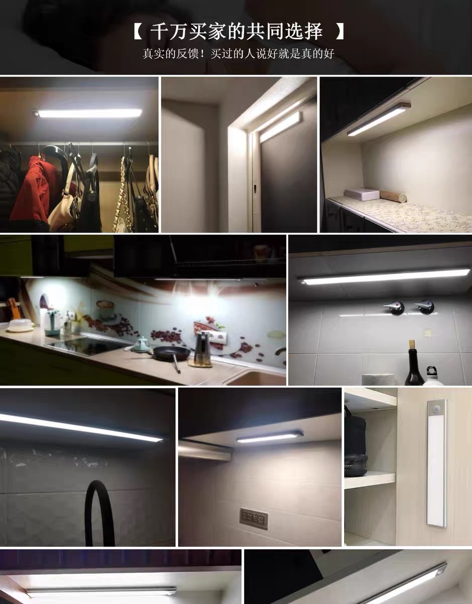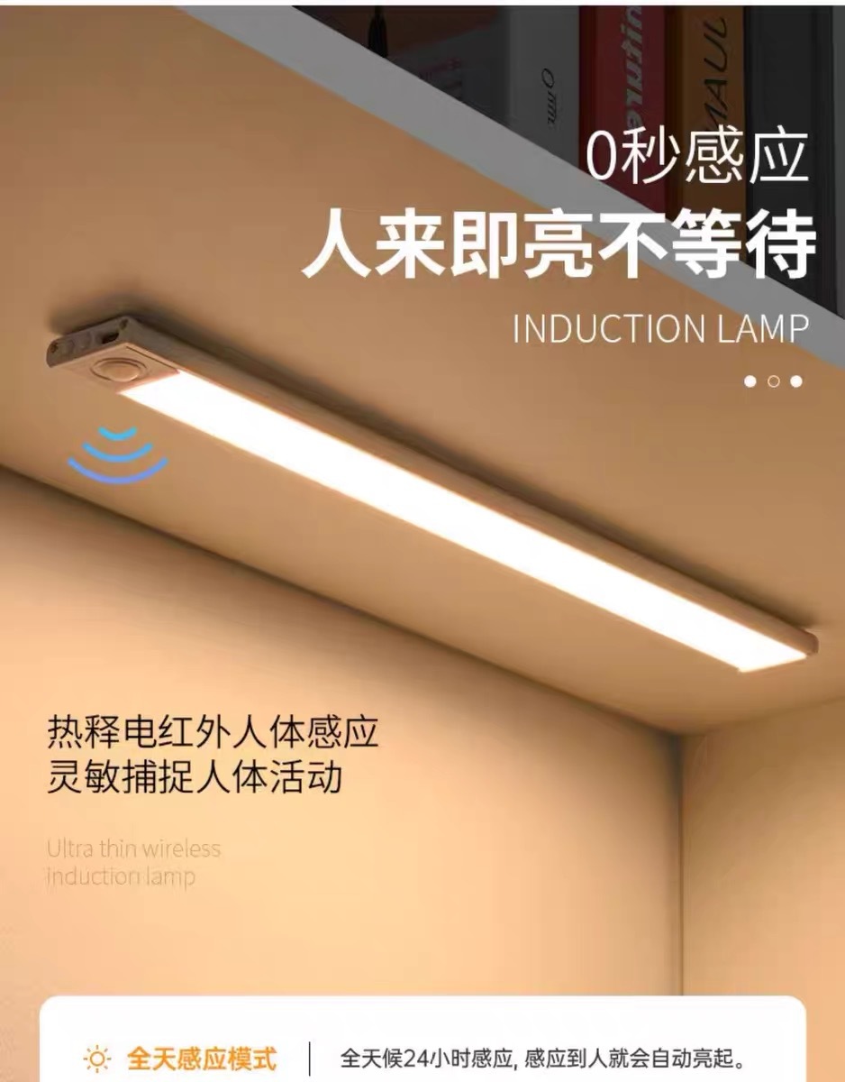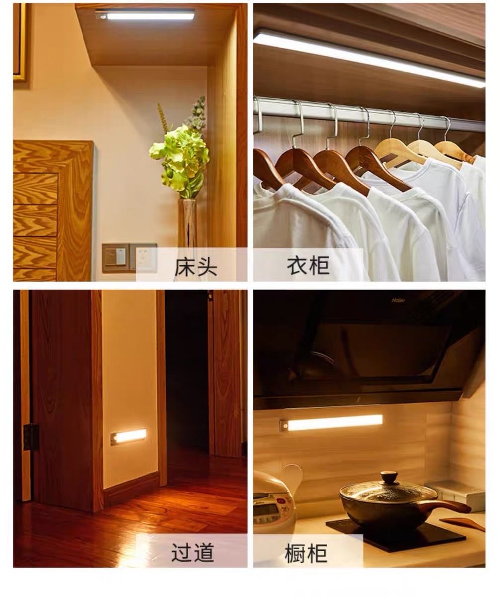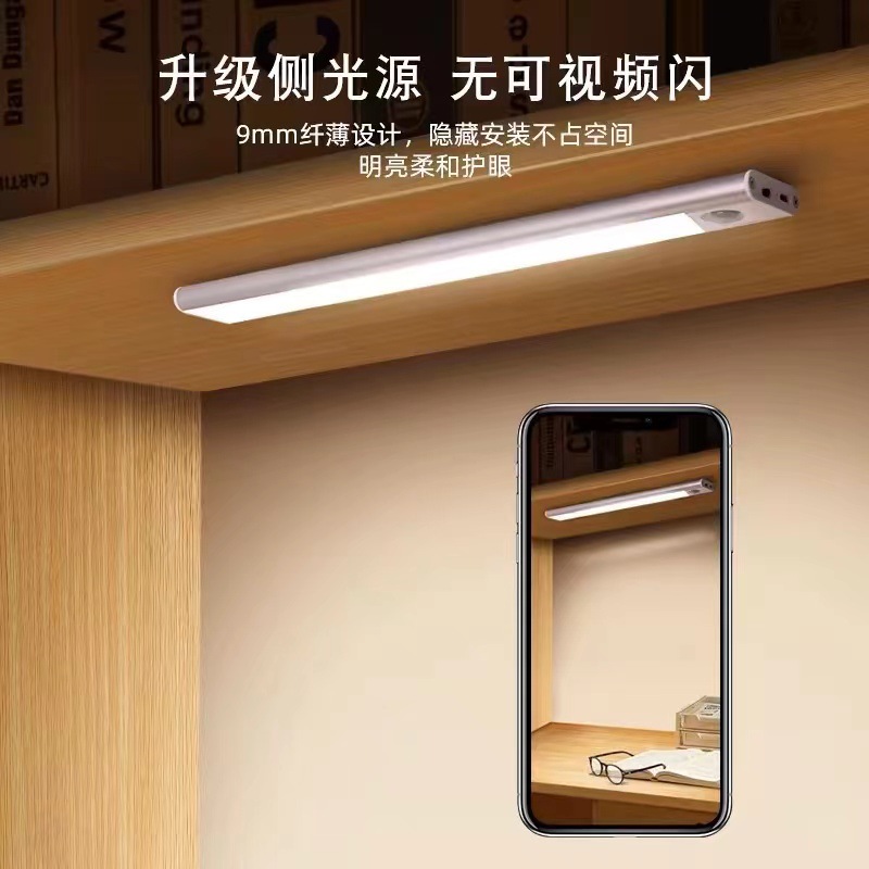 Лампа с датчиком человеческого тела, лампа для домашнего входа, винный шкаф, витрина, проход, светодиодная лампа для шкафа с управлением светом, беспроводная светодиодная лампа для зарядки через USB