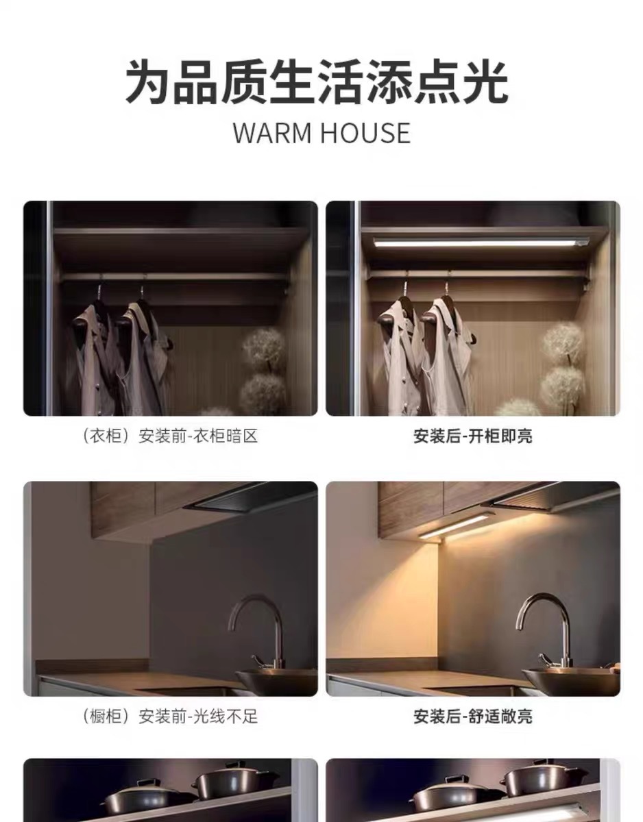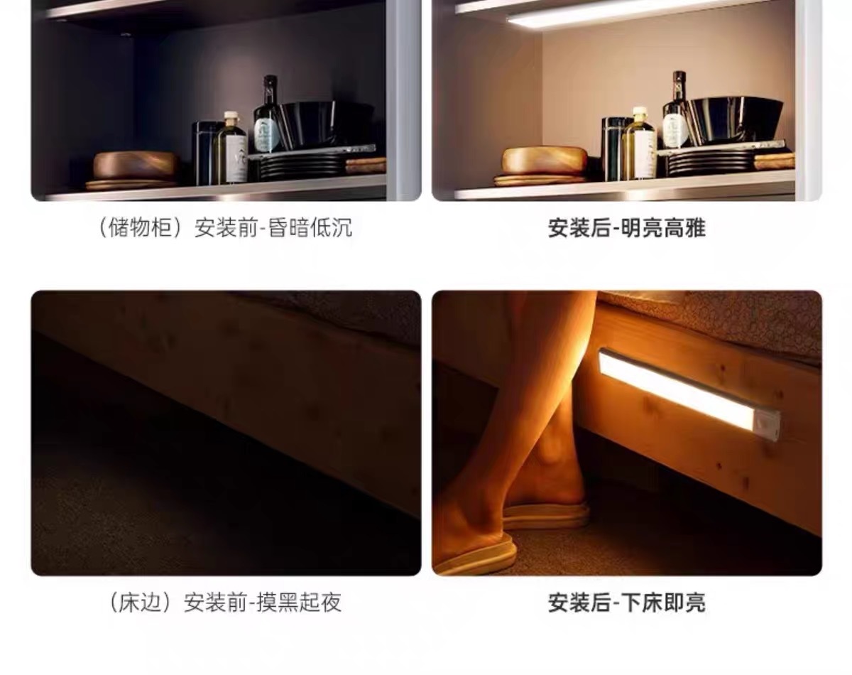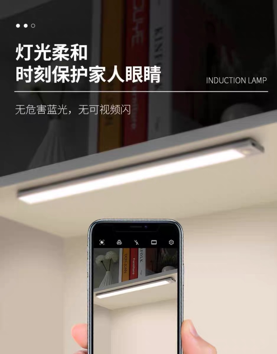 Лампа с датчиком человеческого тела, лампа для домашнего входа, винный шкаф, витрина, проход, светодиодная лампа для шкафа с управлением светом, беспроводная светодиодная лампа для зарядки через USB