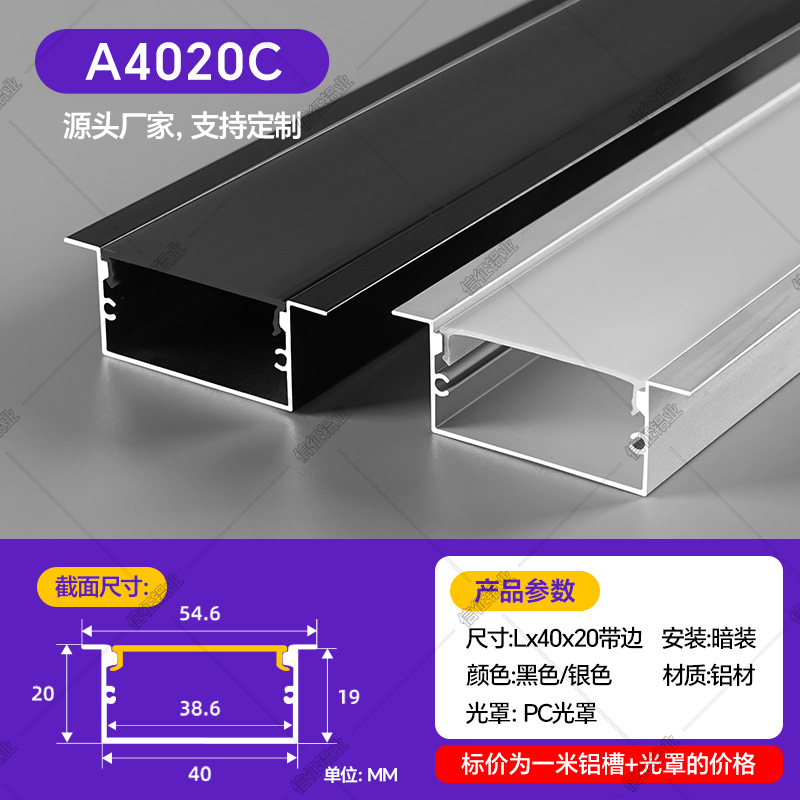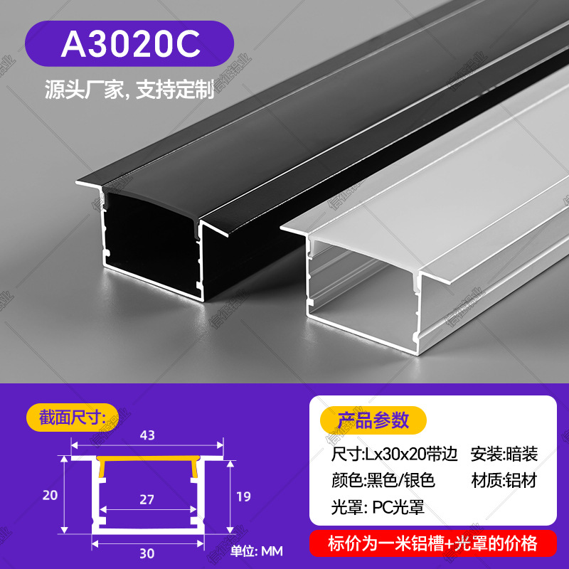 Серебристая черная канавка, одинарная алюминиевая канавка