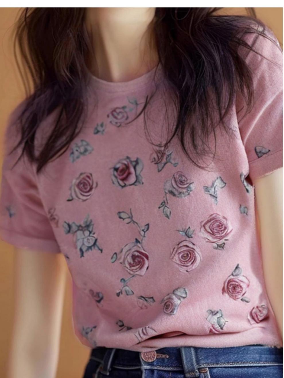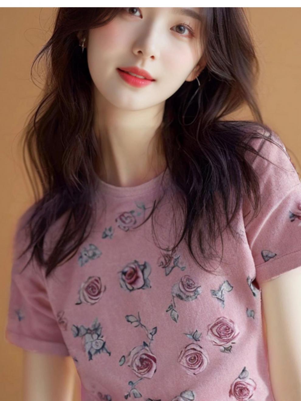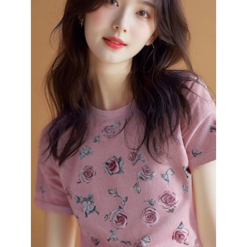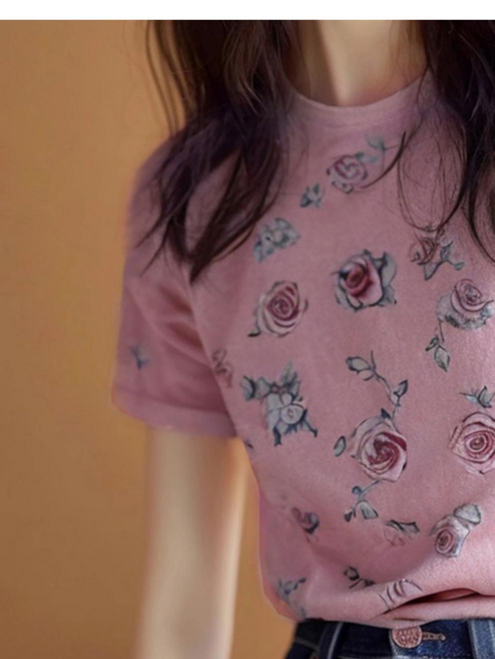 Летняя сладкая ниша уникальная шикарная фиолетовая роза с круглым вырезом на плече высокого качества маленькая рубашка с короткими рукавами женская летняя