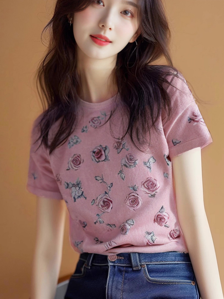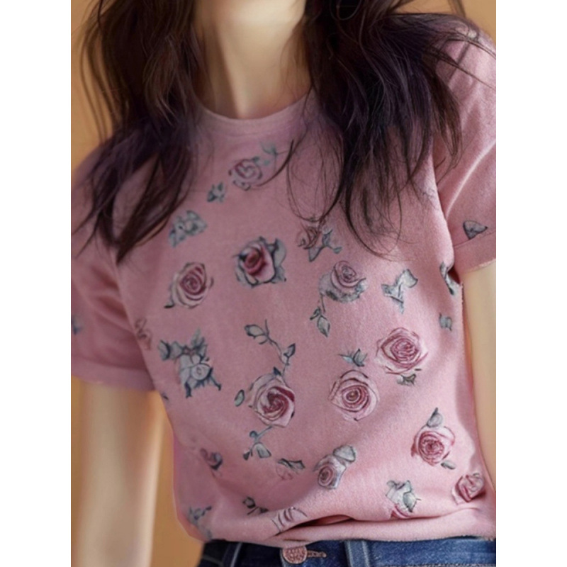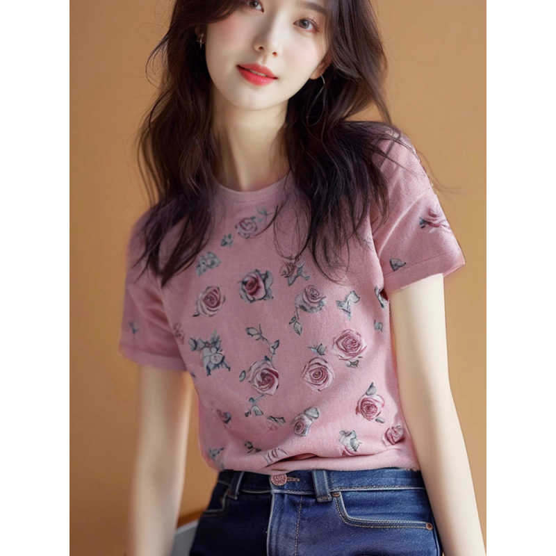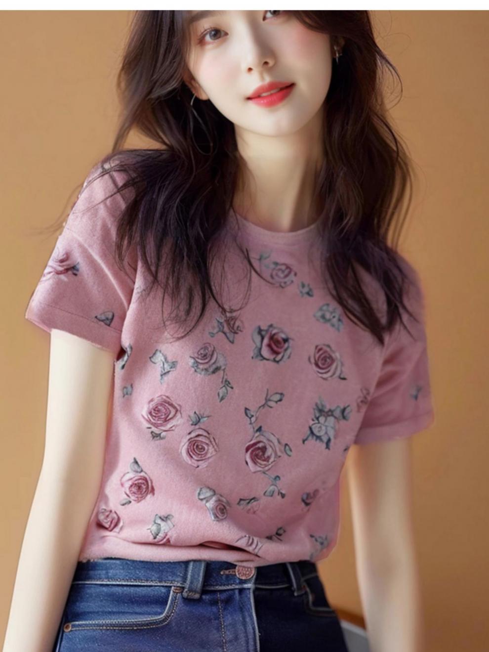 Летняя сладкая ниша уникальная шикарная фиолетовая роза с круглым вырезом на плече высокого качества маленькая рубашка с короткими рукавами женская летняя