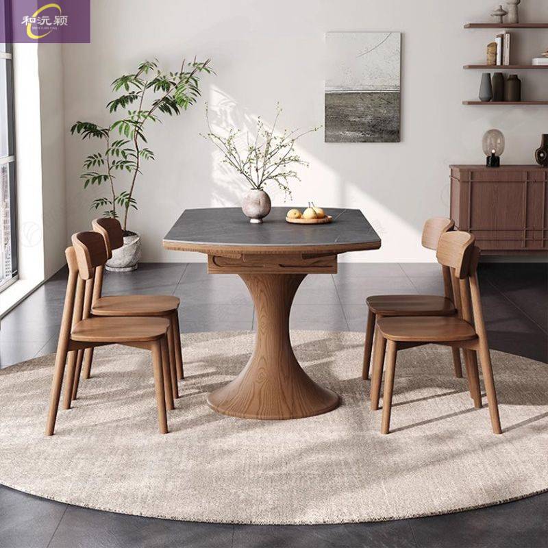 Обеденный стол из цельной древесины из каменной плиты Обеденный стол в старинном стиле Многофункциональный обеденный стол и стулья комбинированные небольшие выдвижные складные обеденные столы