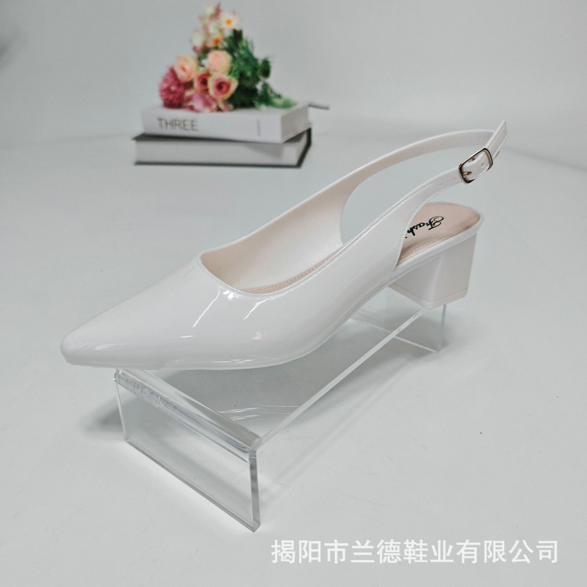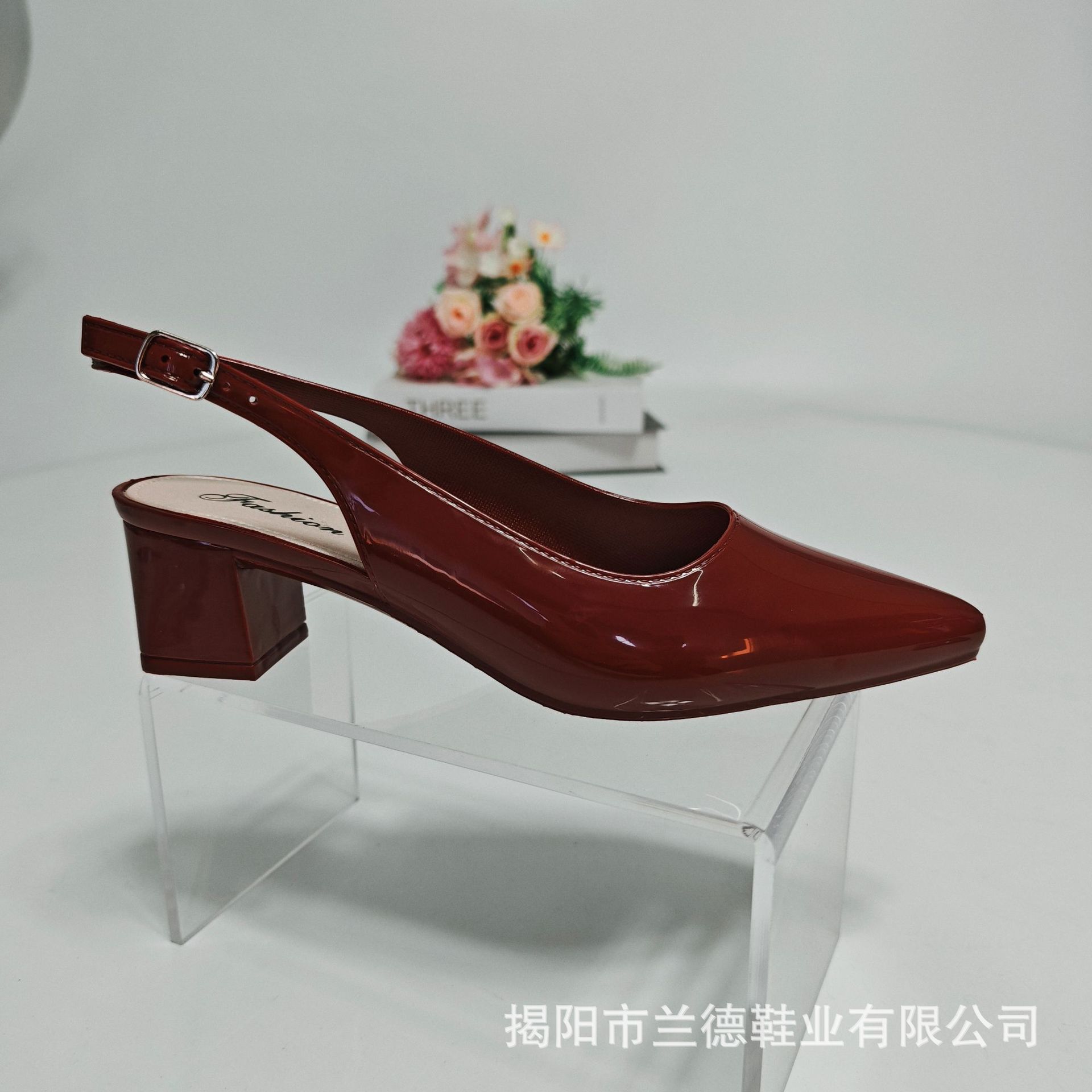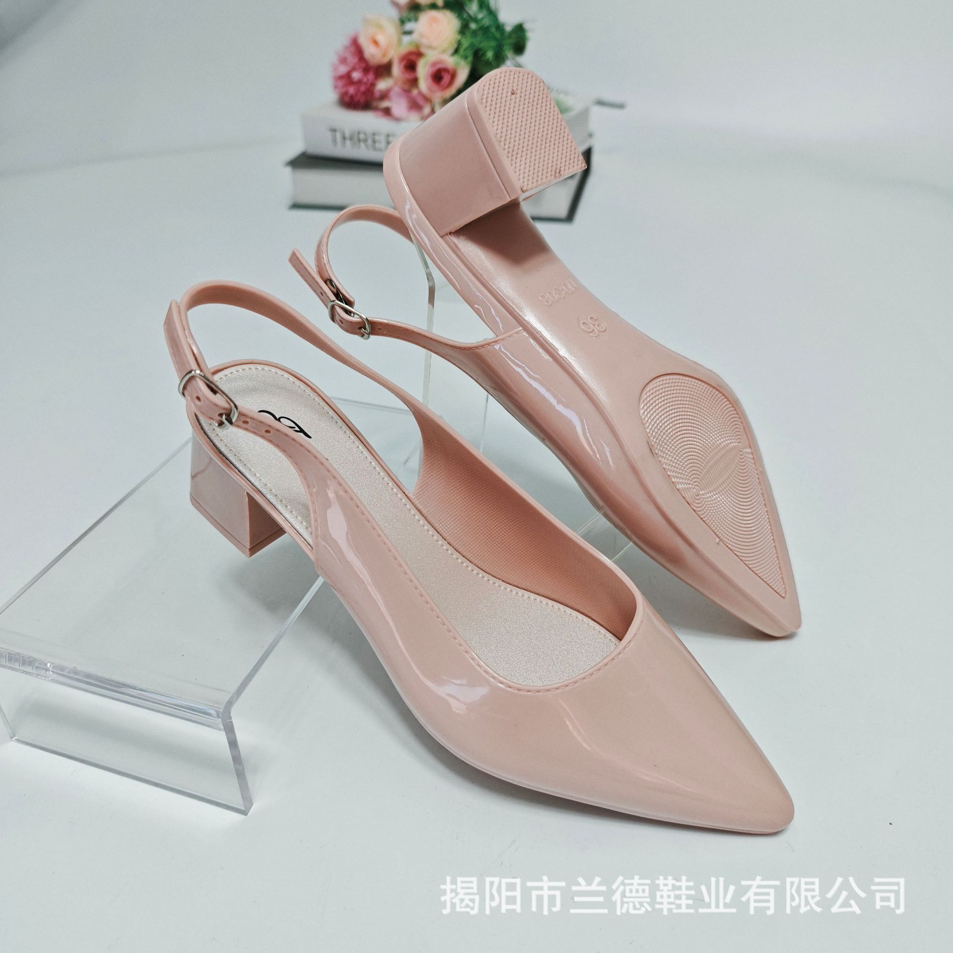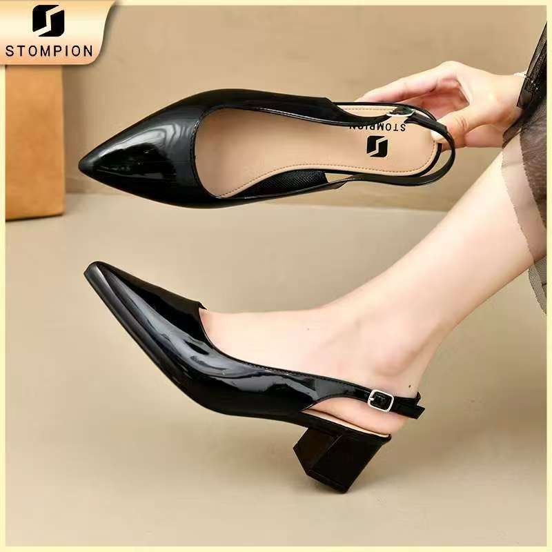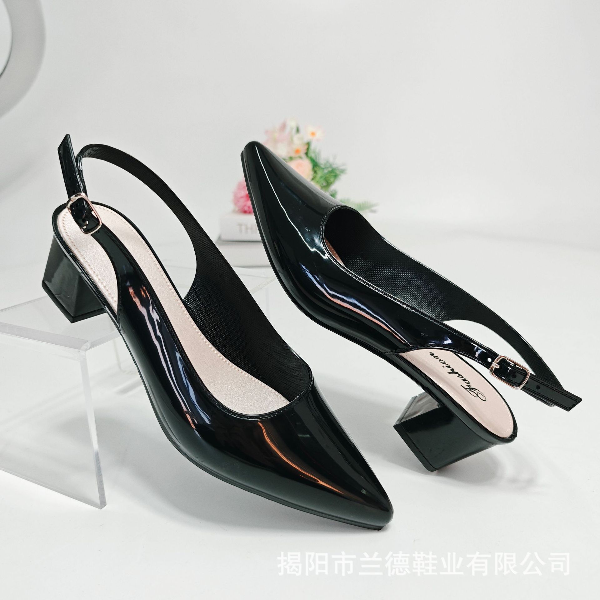 Черные рабочие туфли европейского размера с острым носком, на высоком каблуке, с толстым каблуком, на плоской подошве, с вырезом на задней части, женские сандалии для трансграничных поставок.