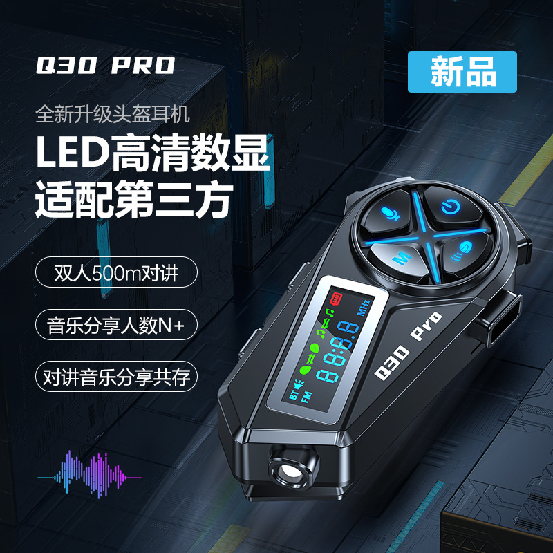 Q30PRO Bluetooth-гарнитура для шлема, светодиодная гарнитура для совместного прослушивания музыки, FM, водонепроницаемый фонарик, гарнитура для шлема для 2 человек, домофон