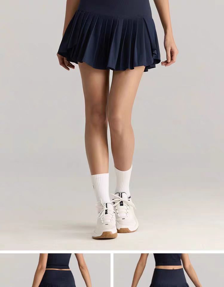 Новые леггинсы с высокой талией и теннисная юбка для женщин, плиссированная фитнес-юбка, короткая юбка для активного отдыха, бадминтона, спорта, быстросохнущая, для бега