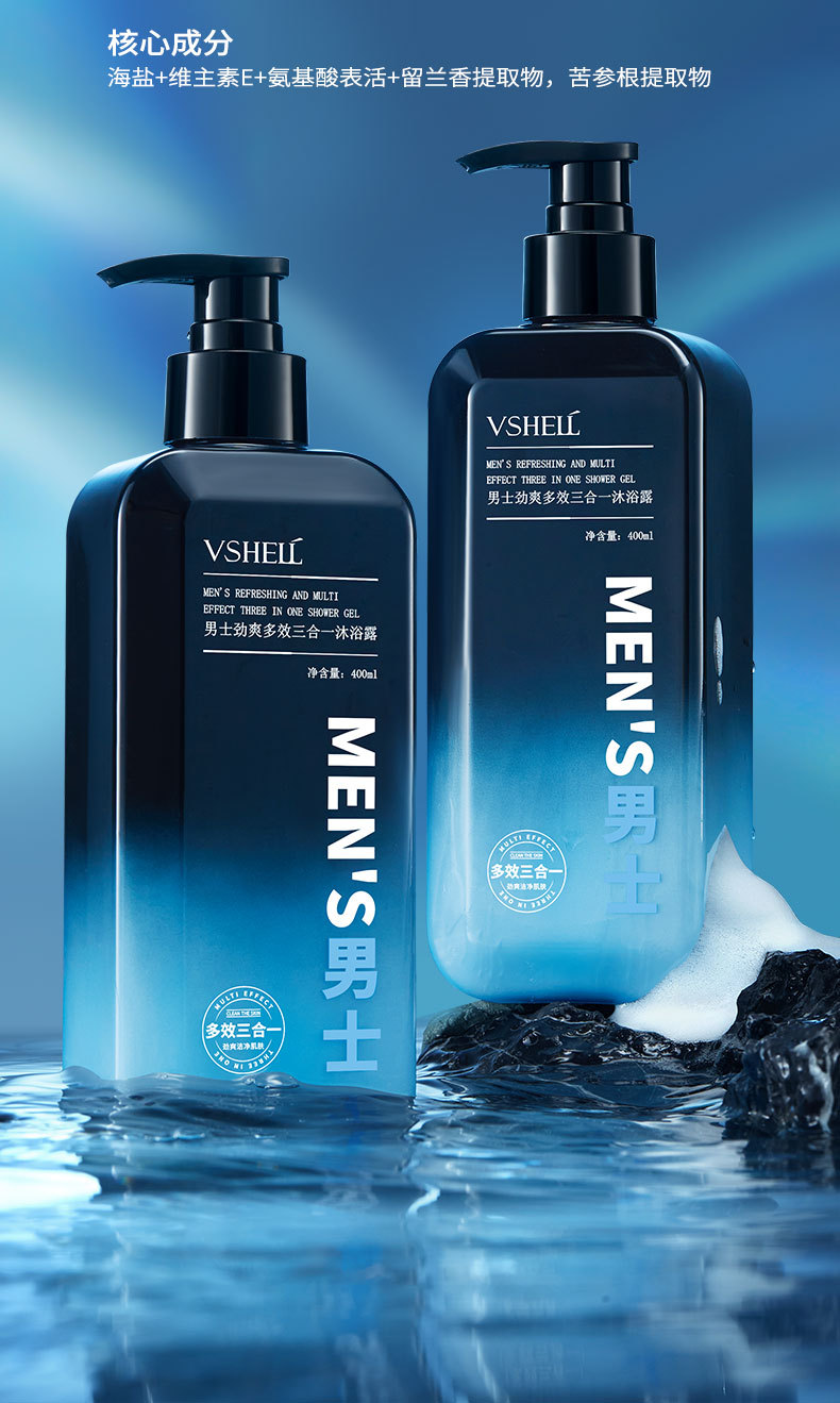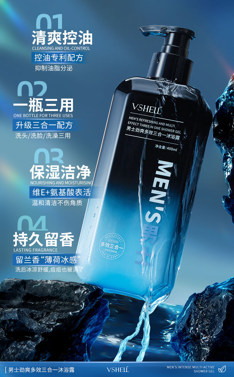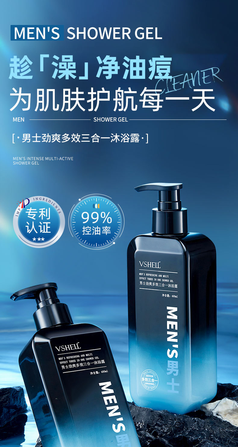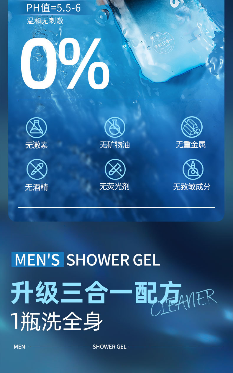 Zhibe мужской освежающий гель для душа, контроль жирности, очищающий шампунь для мытья лица, мытья лица, многофункциональный шампунь «три в одном»