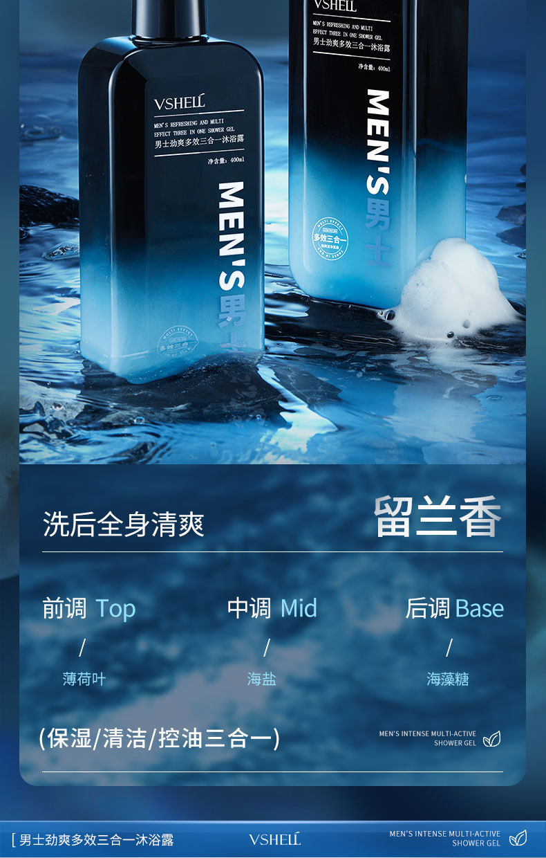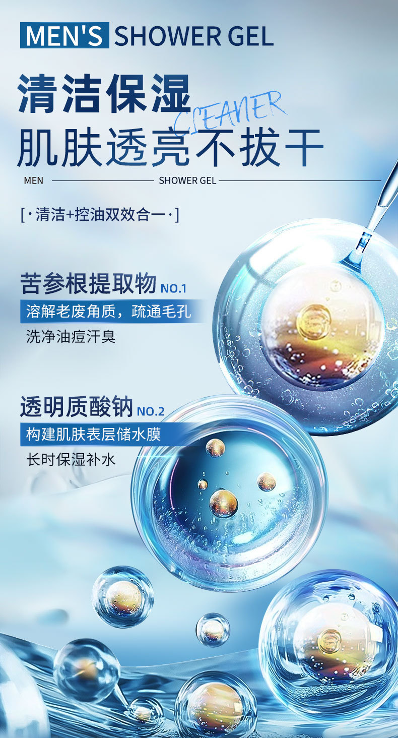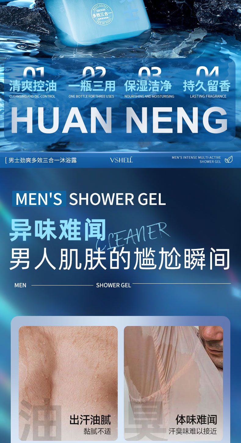 Zhibe мужской освежающий гель для душа, контроль жирности, очищающий шампунь для мытья лица, мытья лица, многофункциональный шампунь «три в одном»