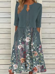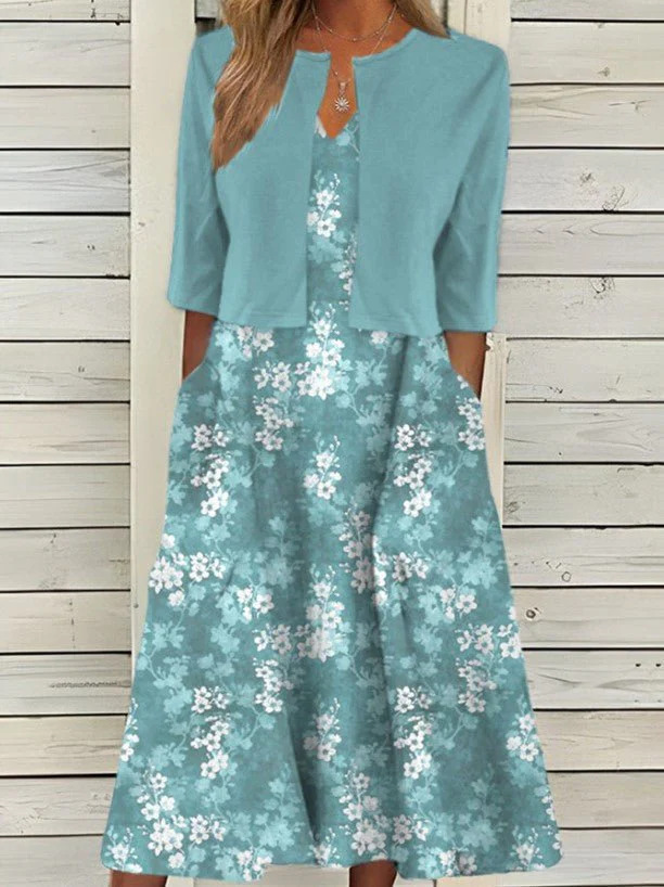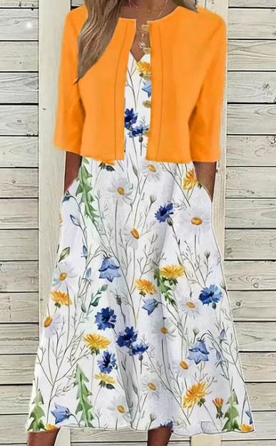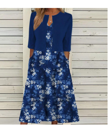 2024 женское платье-двойка больших размеров с цветочным принтом для повседневной носки, длинная юбка