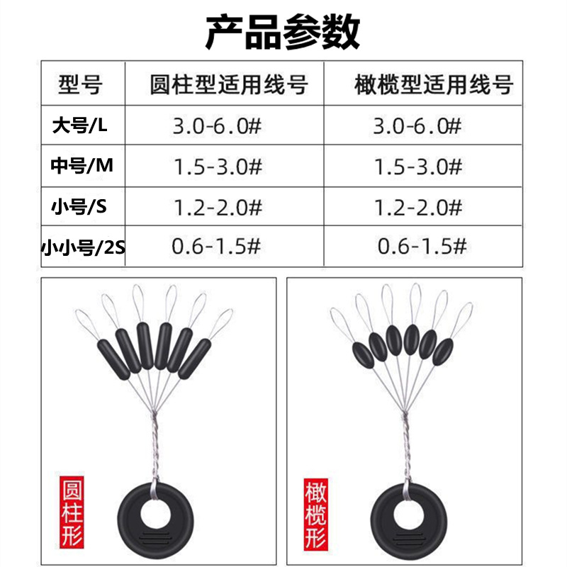 Оптовая продажа цилиндрических рыболовных бобов из резины, прозрачных силиконовых бобов, наборы лески для ловли крупной рыбы, оливковые бобы из Оксфорда.