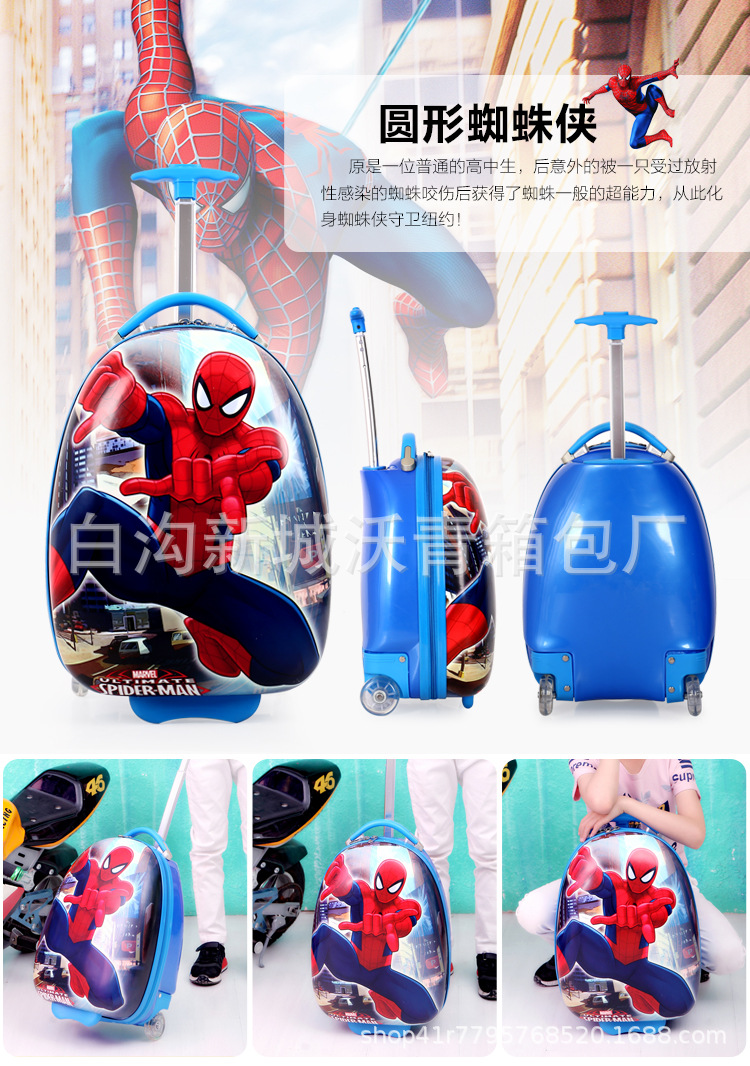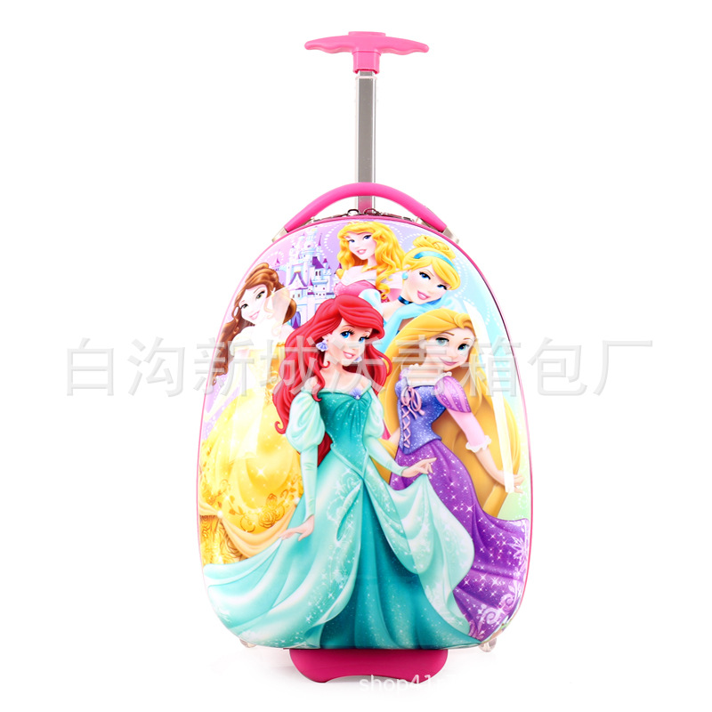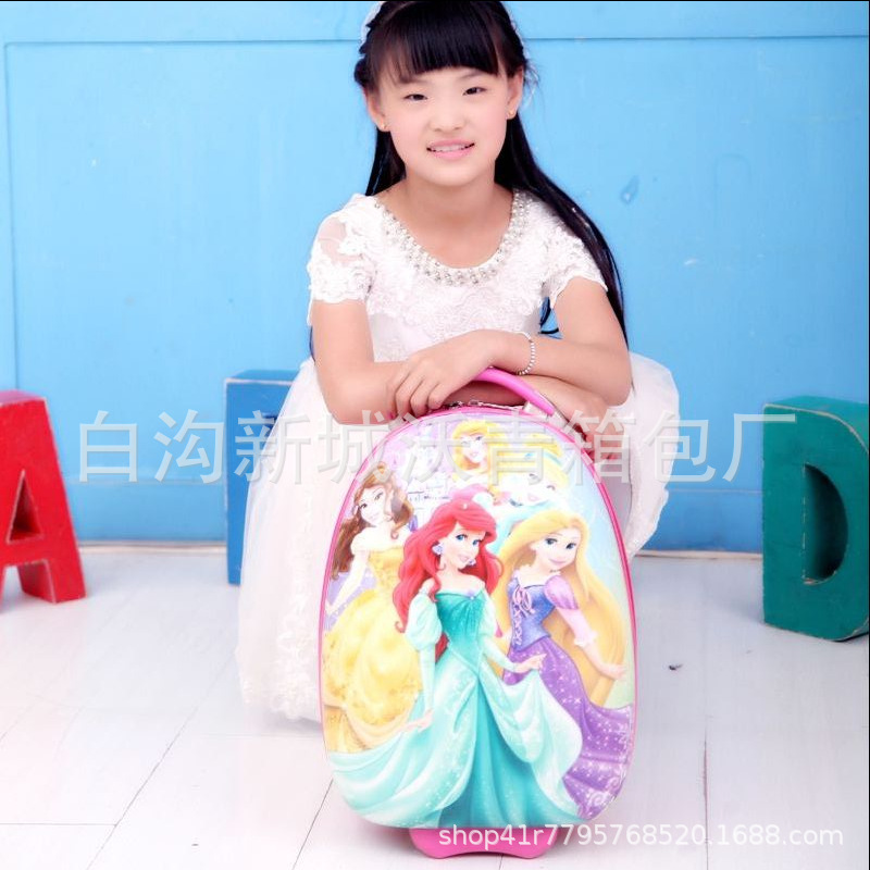 Детский чемодан на колесиках с рисунком «Человек с большими глазами», жесткий чемодан, милый школьный чемодан для малышей, 16inch яичная скорлупа, школьная сумка на колесиках