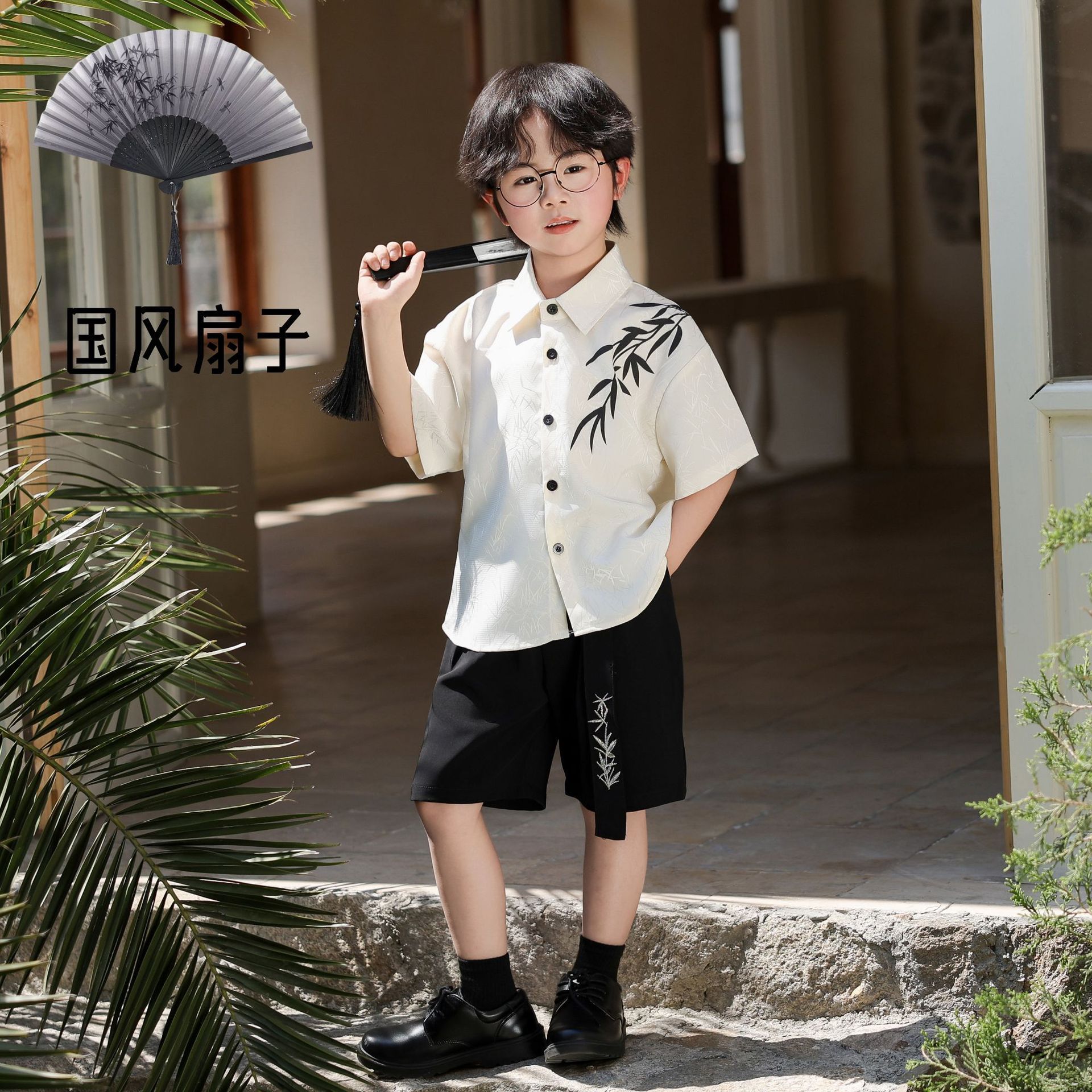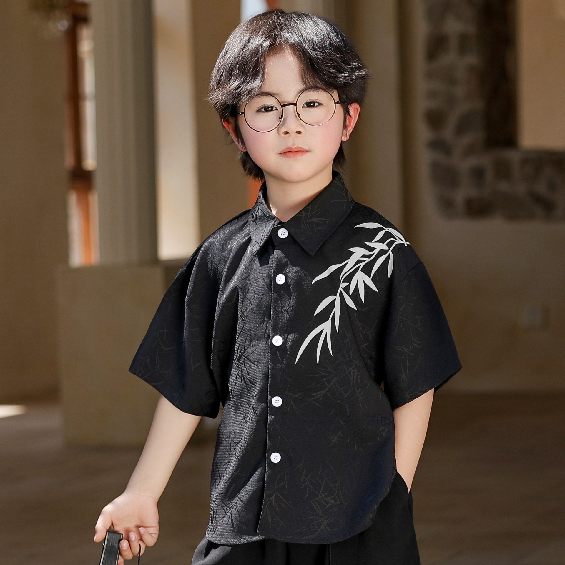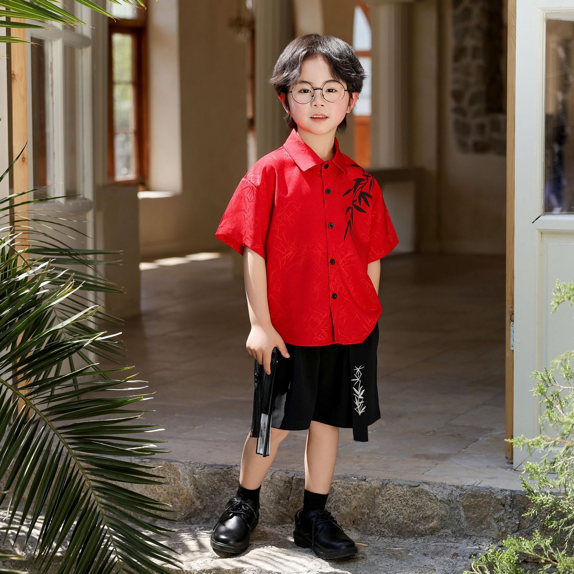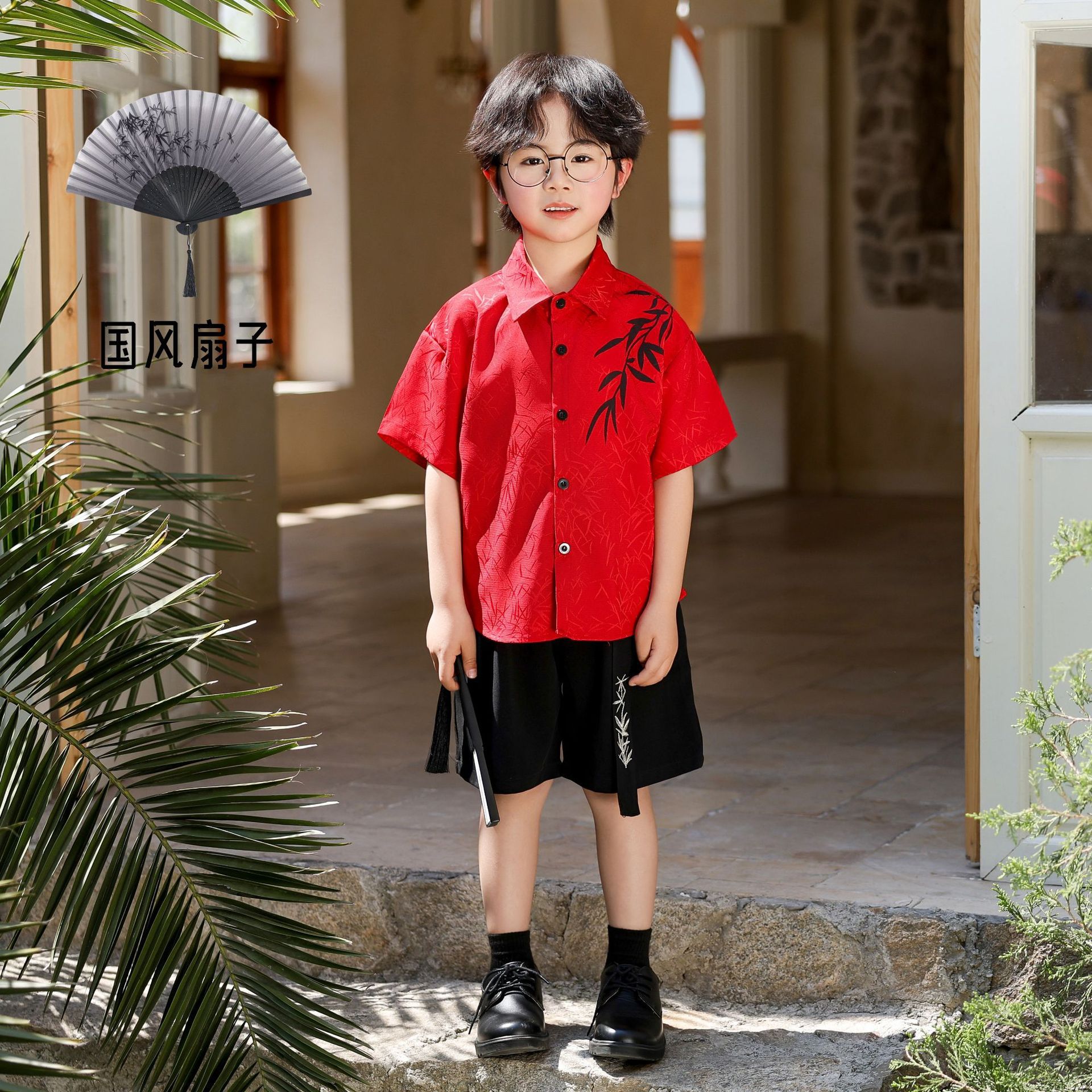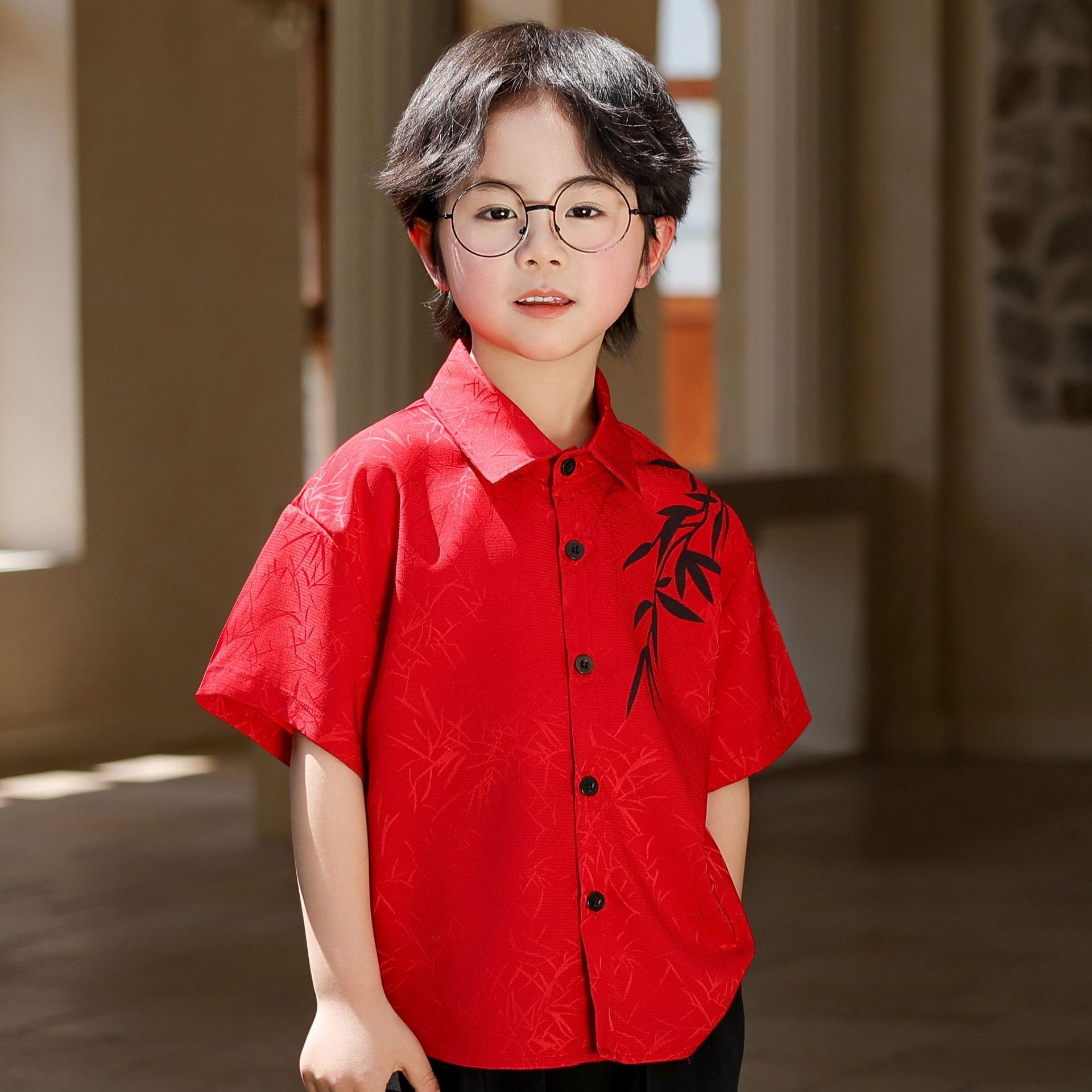 Детский костюм в китайском стиле: жаккардовая рубашка с коротким рукавом для мальчиков, стильное платье-рубашка, национальный тренд, наряд для выступления