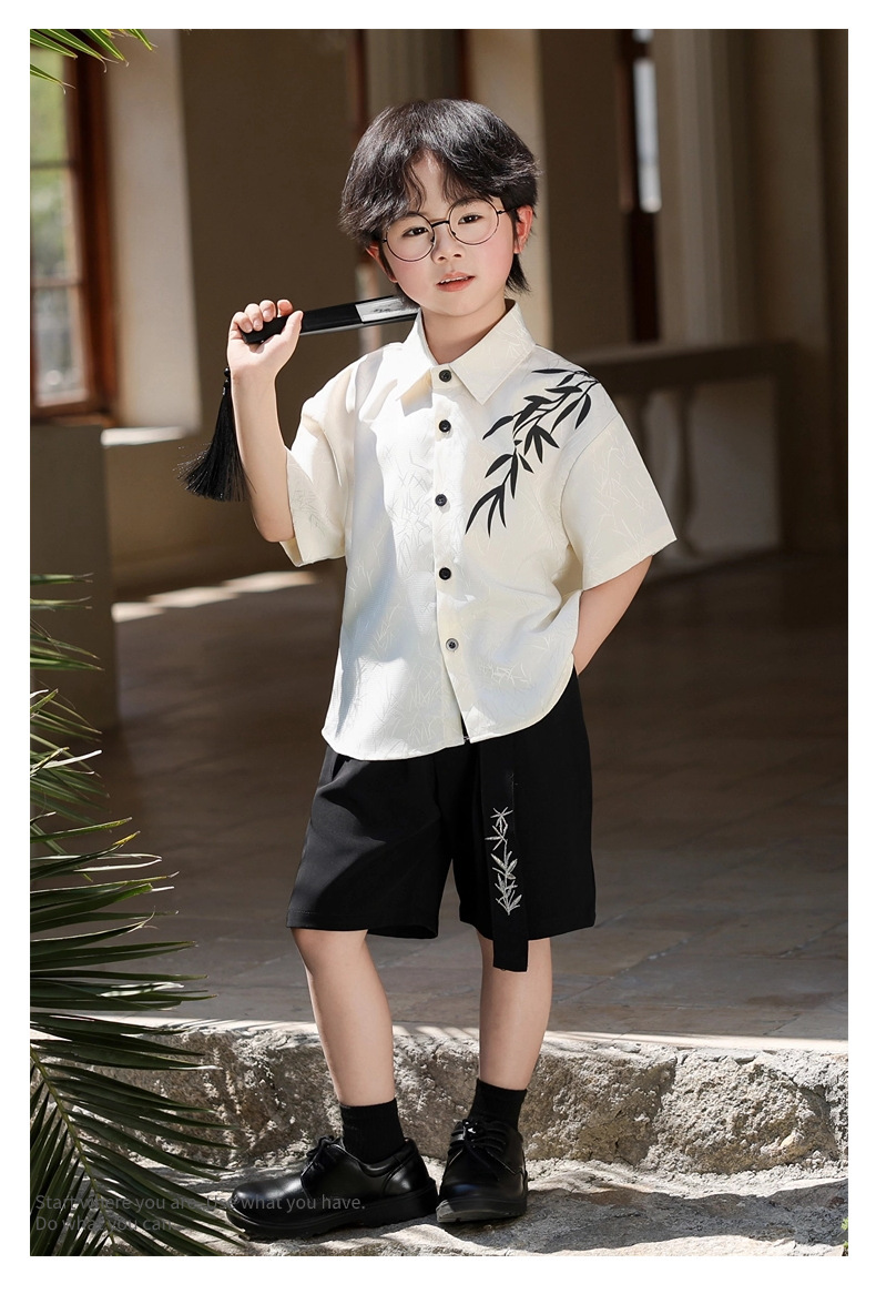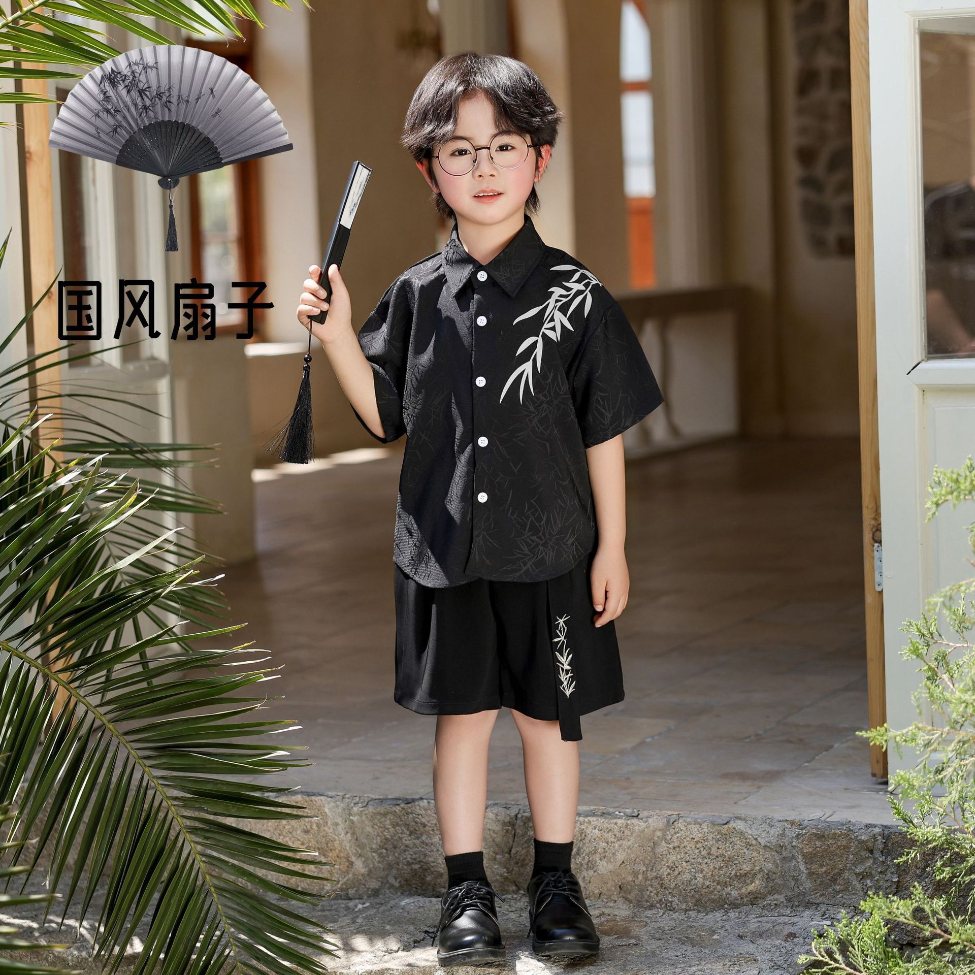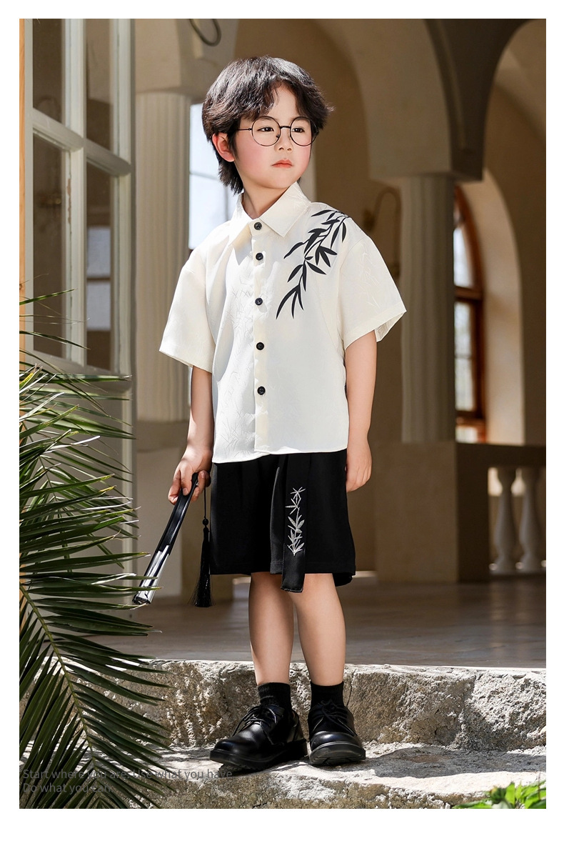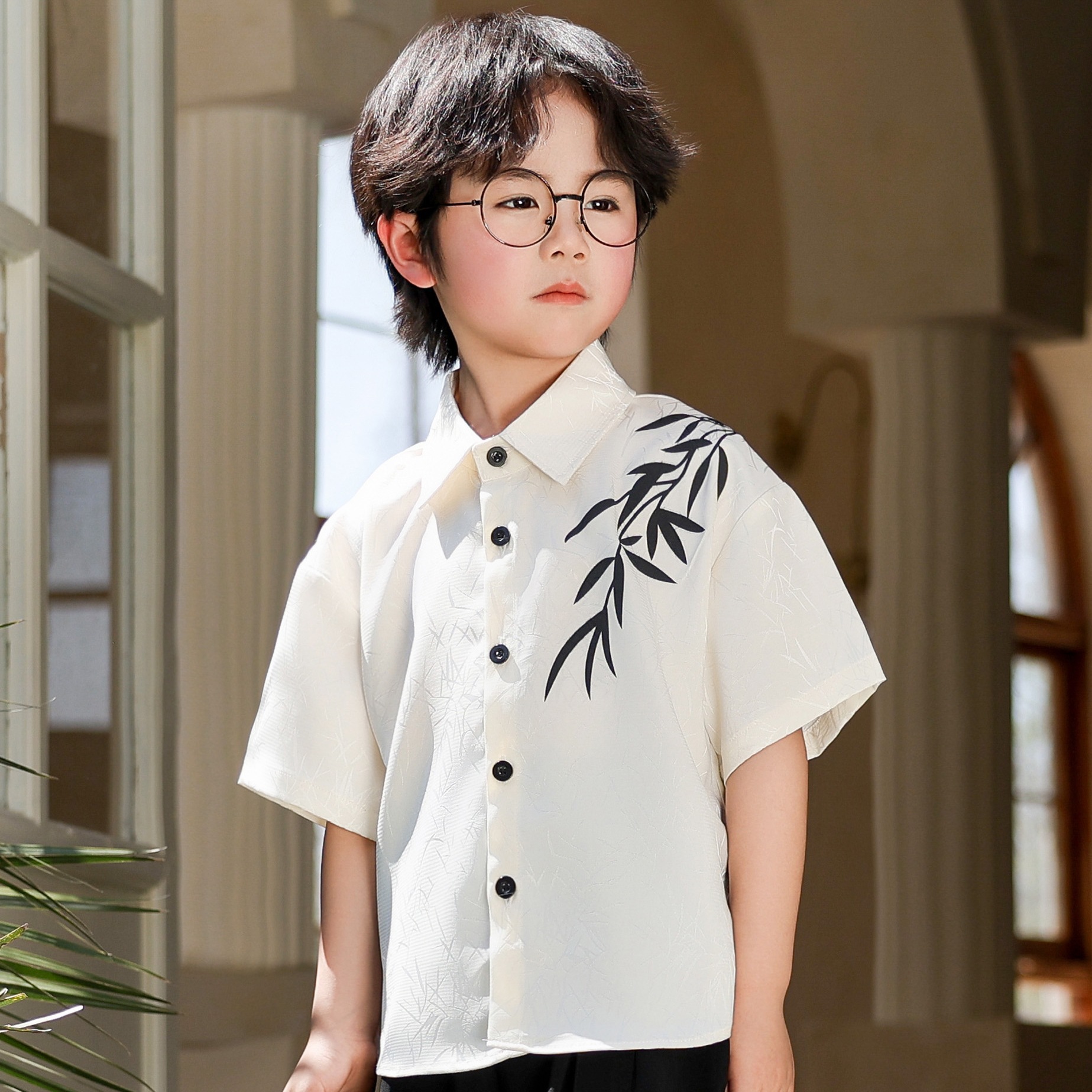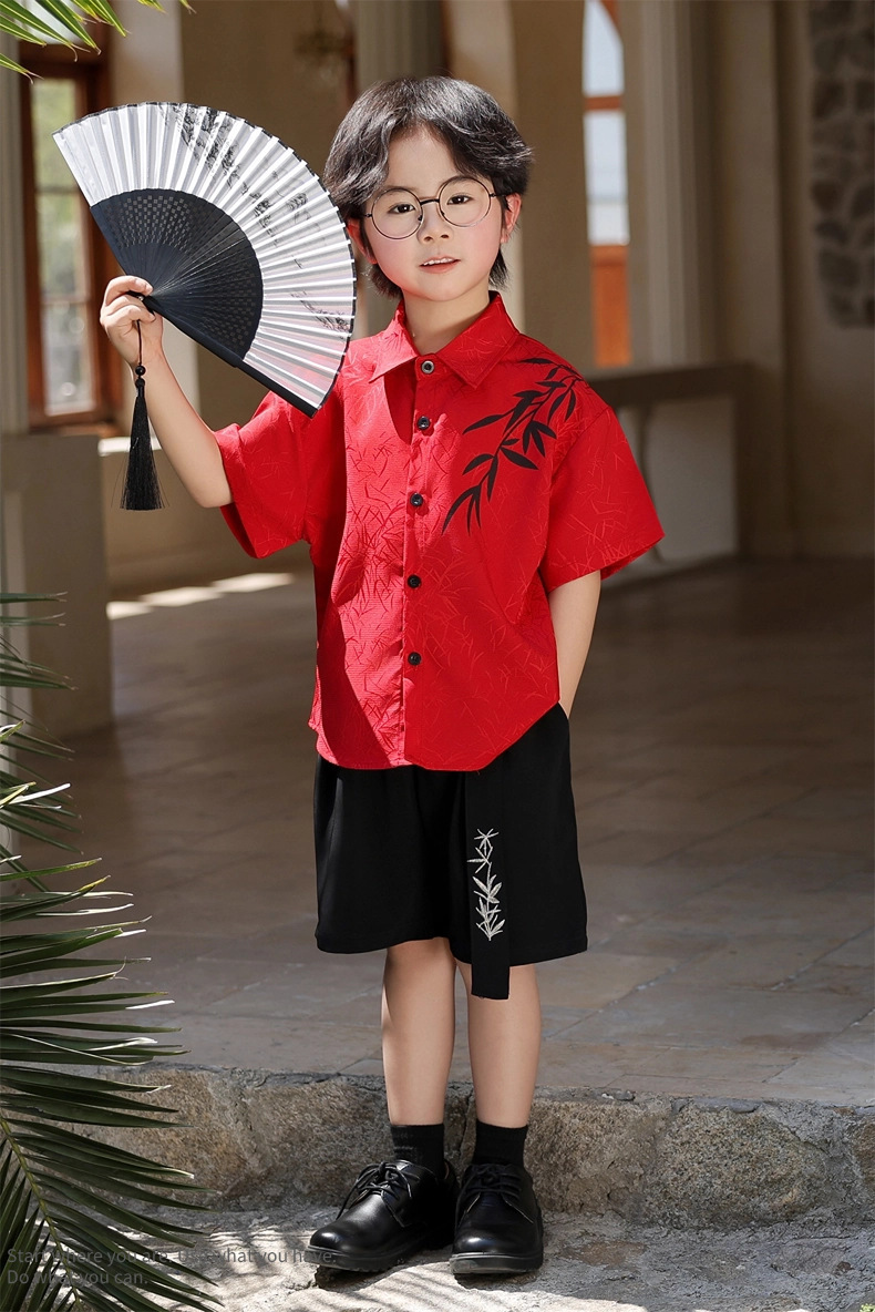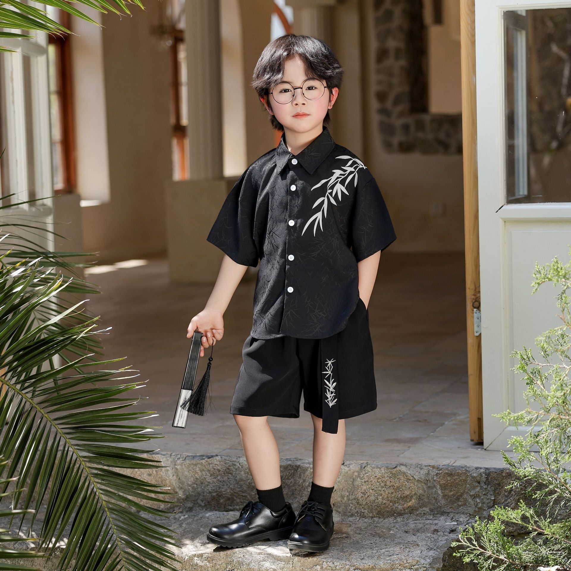 Детский костюм в китайском стиле: жаккардовая рубашка с коротким рукавом для мальчиков, стильное платье-рубашка, национальный тренд, наряд для выступления