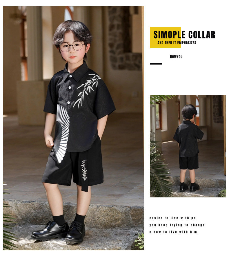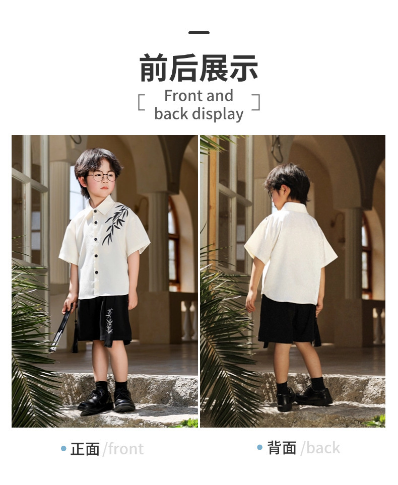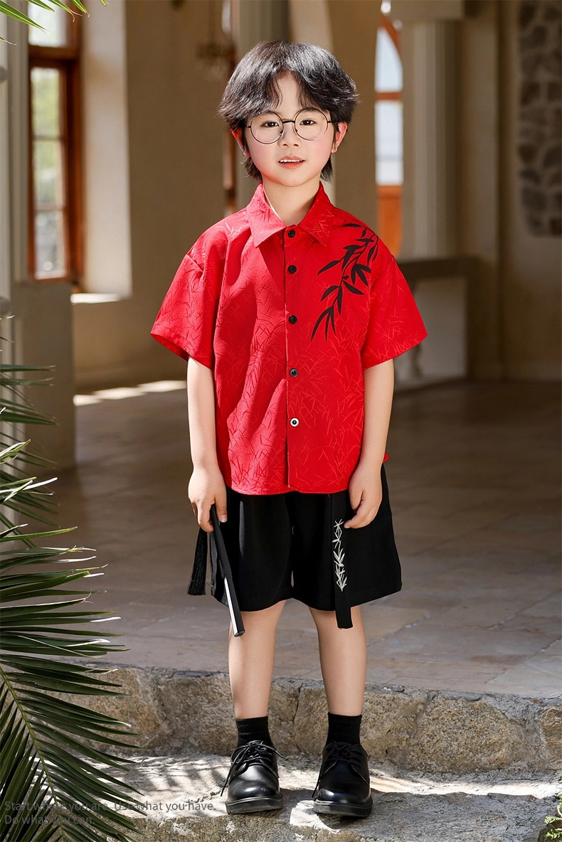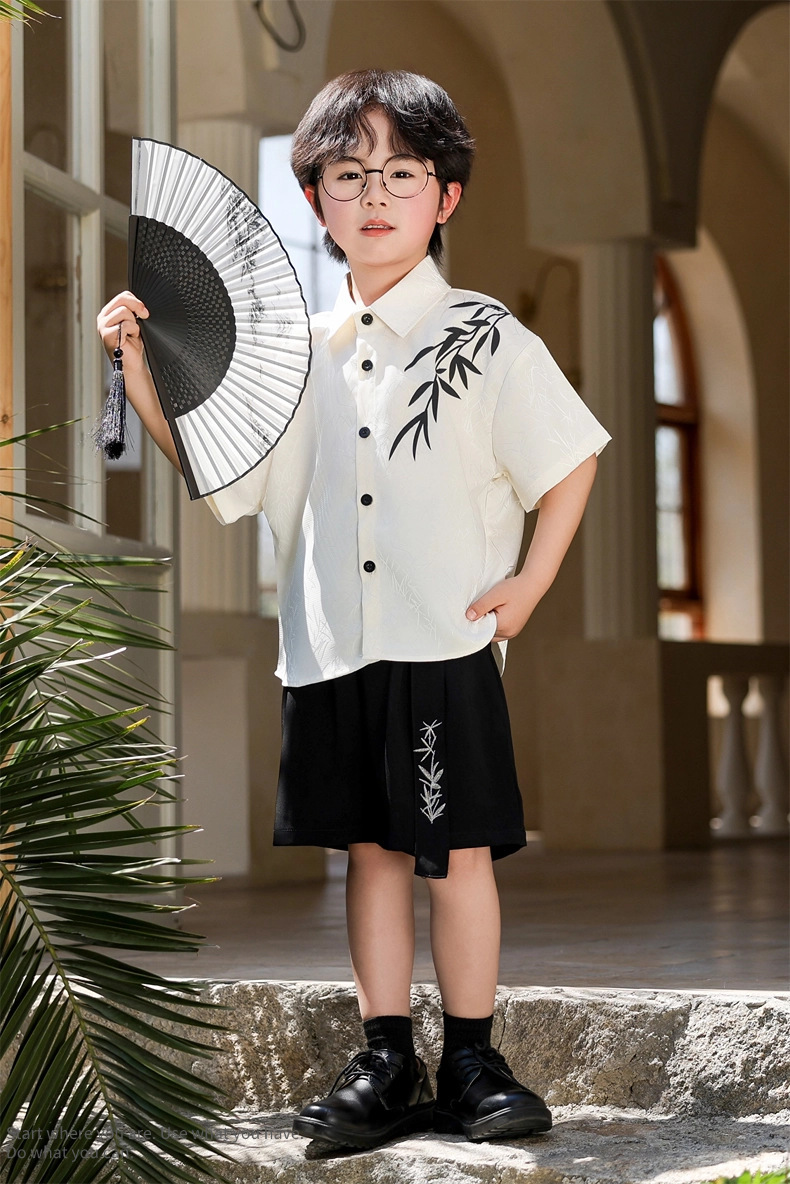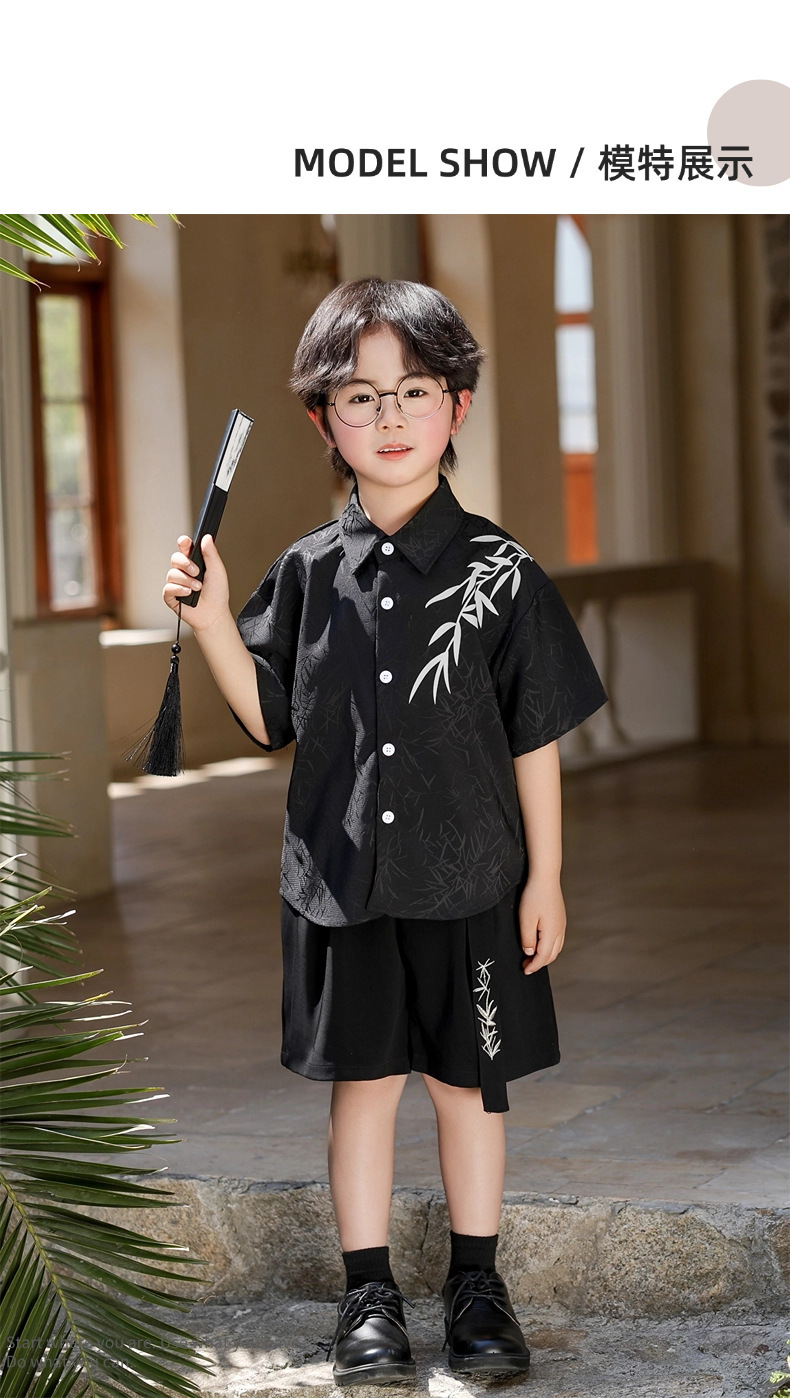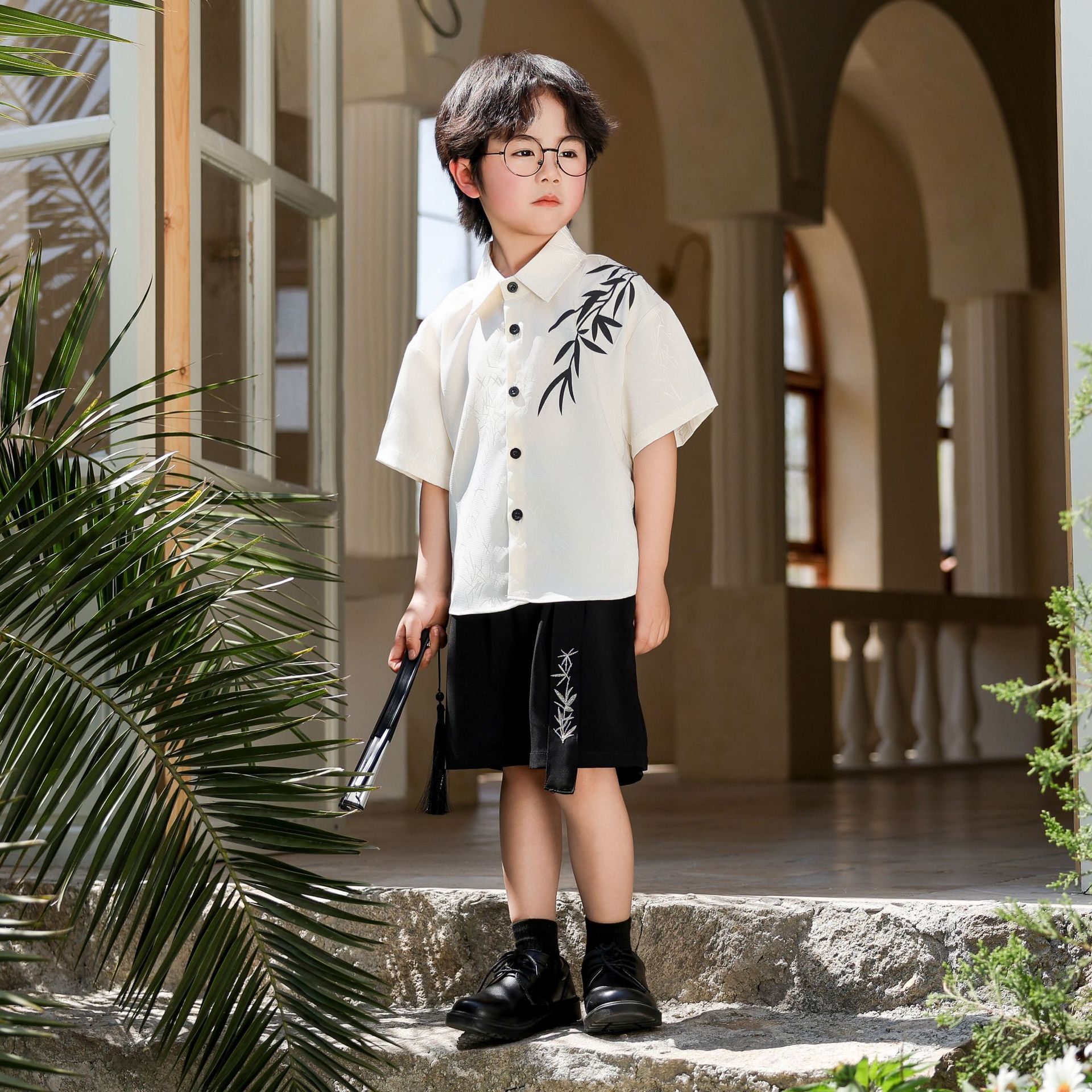 Детский костюм в китайском стиле: жаккардовая рубашка с коротким рукавом для мальчиков, стильное платье-рубашка, национальный тренд, наряд для выступления