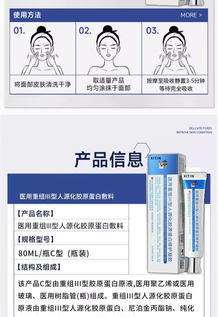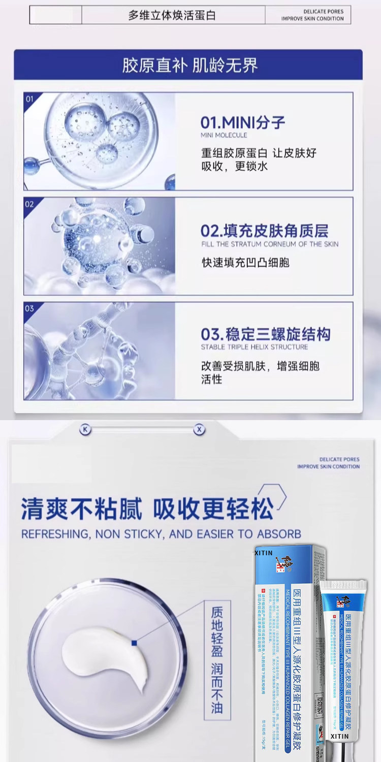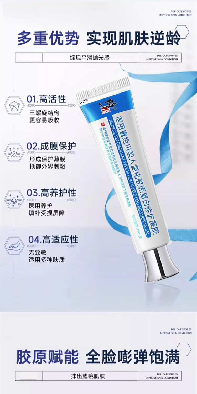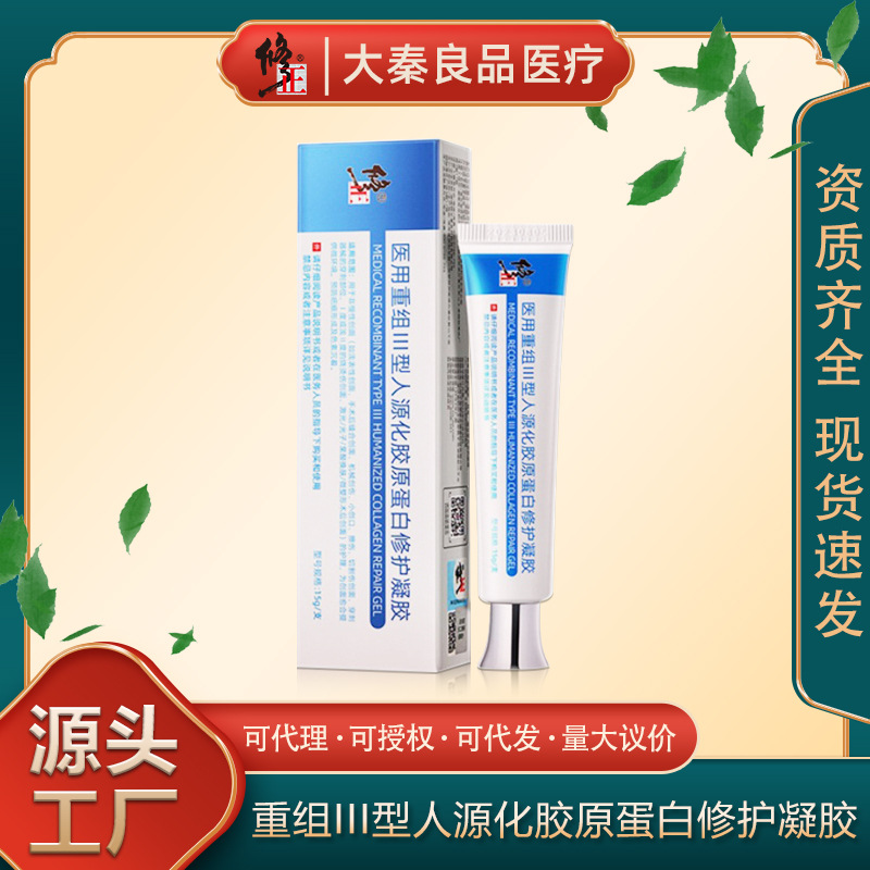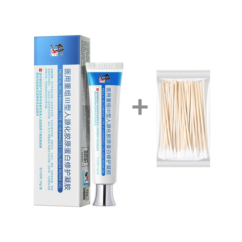 Медицинский рекомбинантный гель-пластырь с коллагеном III типа для восстановления кожи, предназначенный для лечения ожогов и ран.